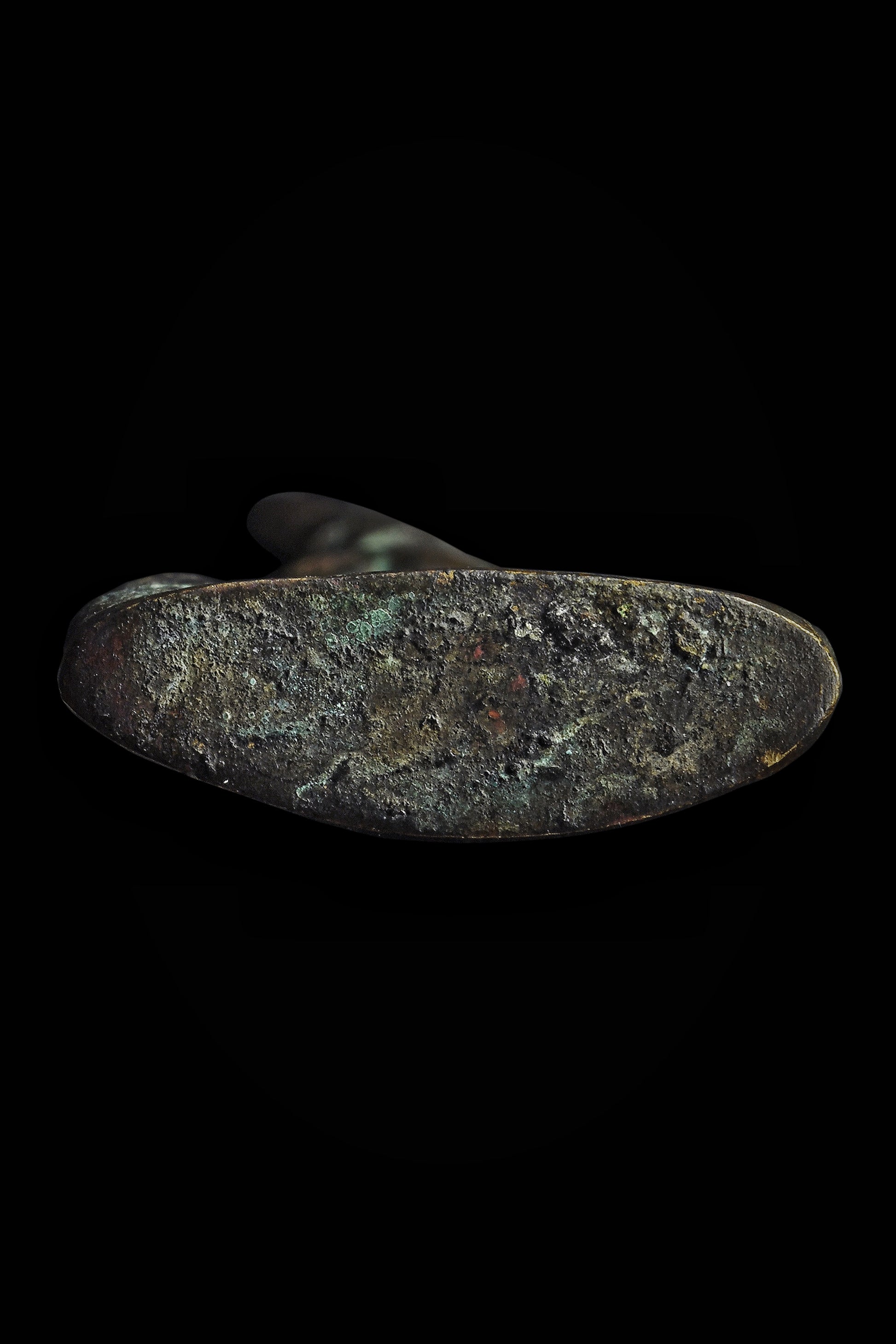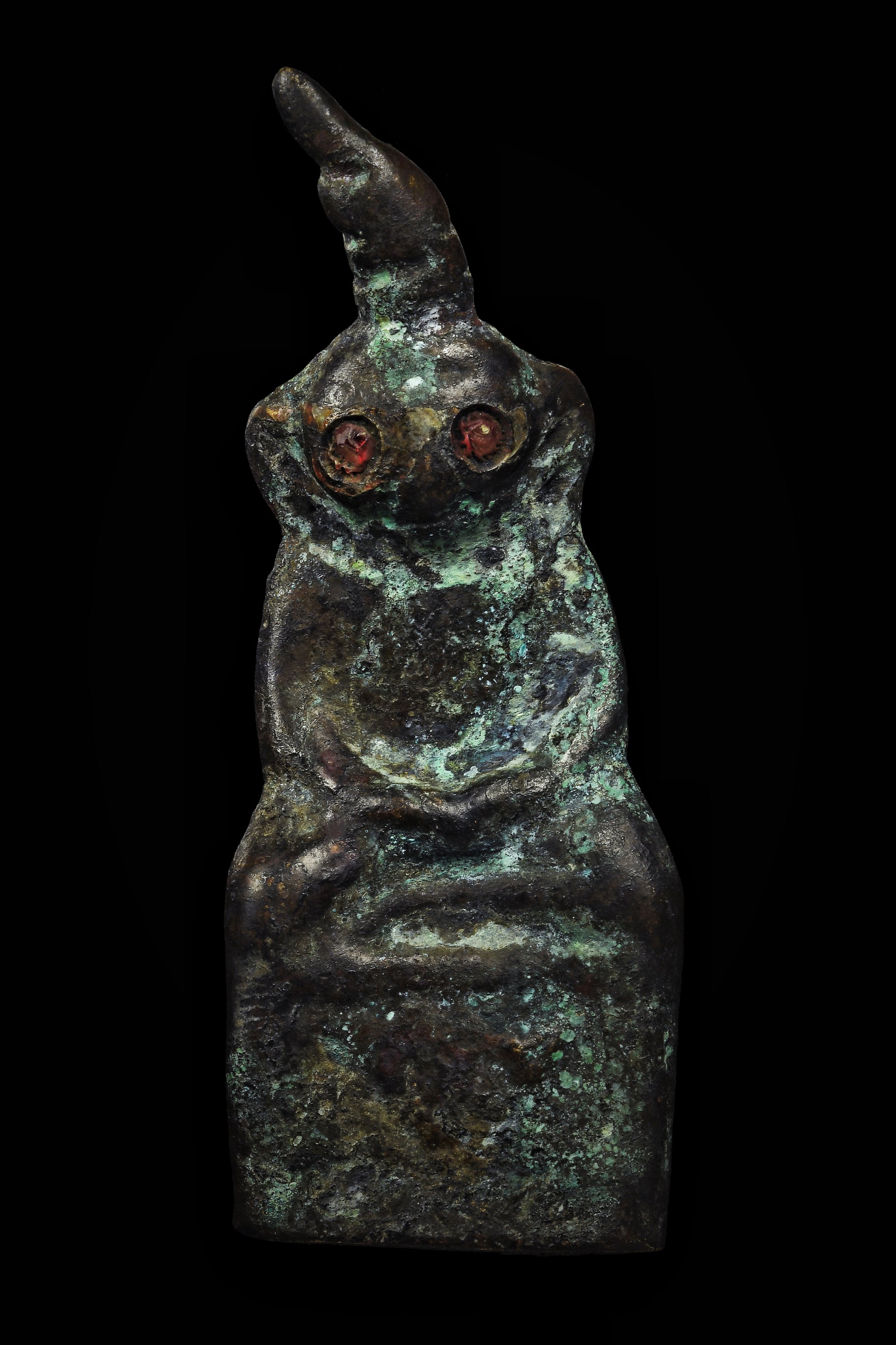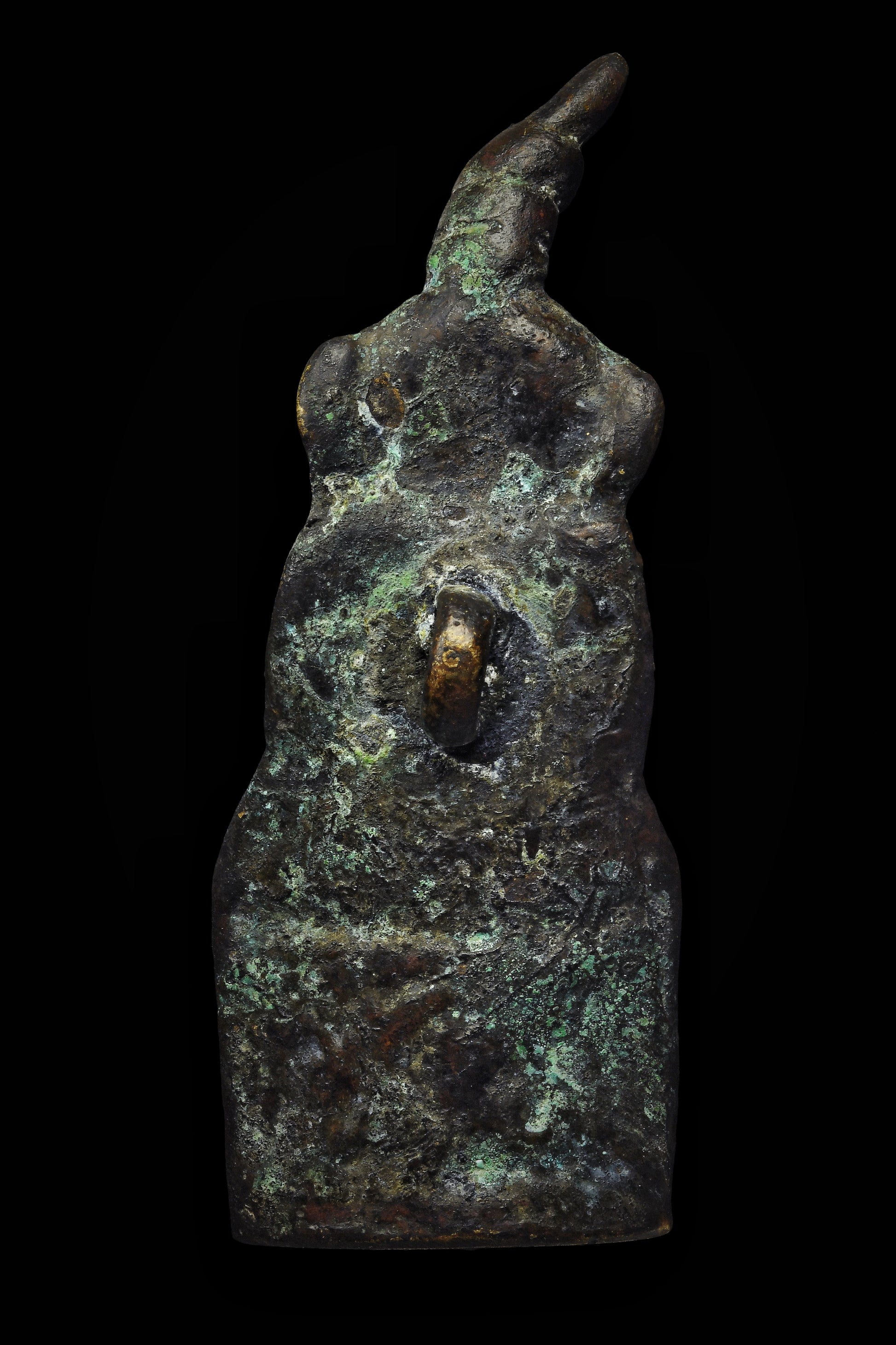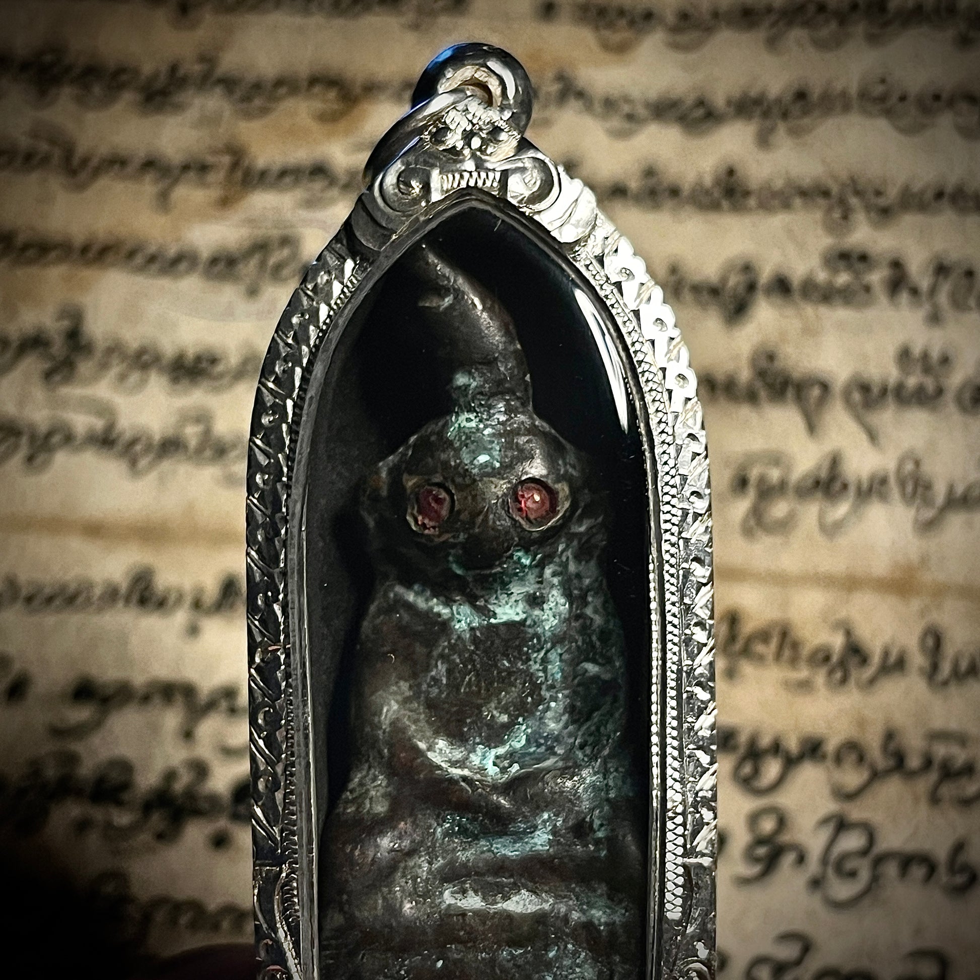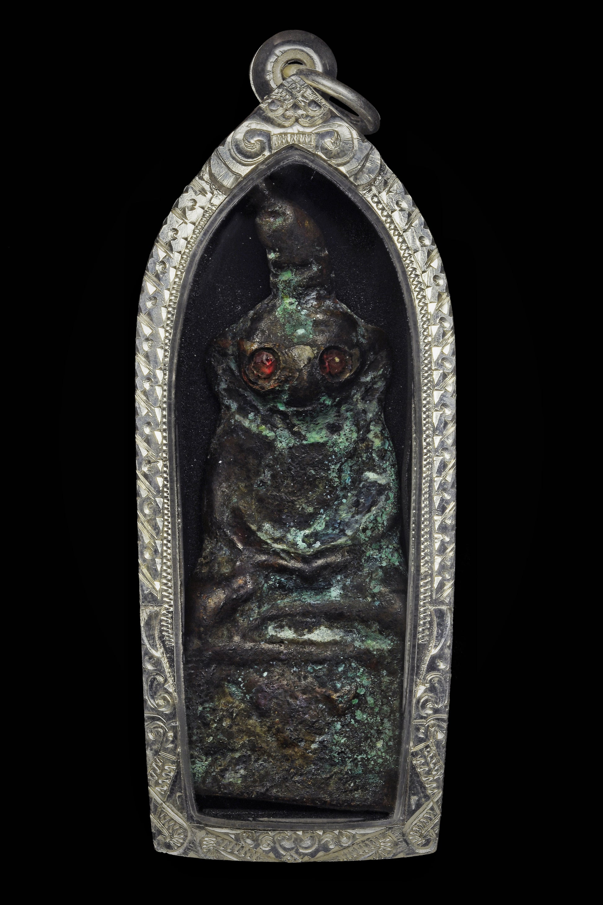 Ps:根据品相和地区历史因素推断,大概距今50-60年左右,而这尊拍婴的出处;由我经常合作的挖宝猎人在布里兰府(泰柬边境)塔普帘寺附近(Ta Phraya National Park)的芭蕉林中;用金属探测器挖掘出来。通体红斑绿锈自然,氧化铜和锈玉明显;版型周正(底座高度达到标准),并非近代翻模的伪铜拍婴,供奉尺寸舒适,亲自供奉下来没有任何不良反应,体验主要在偏财方面效果非常不错,定制了大克数纯银开合封背壳。