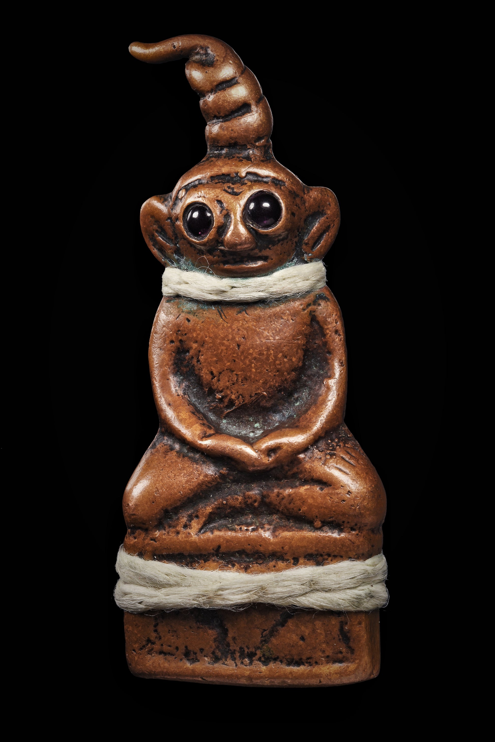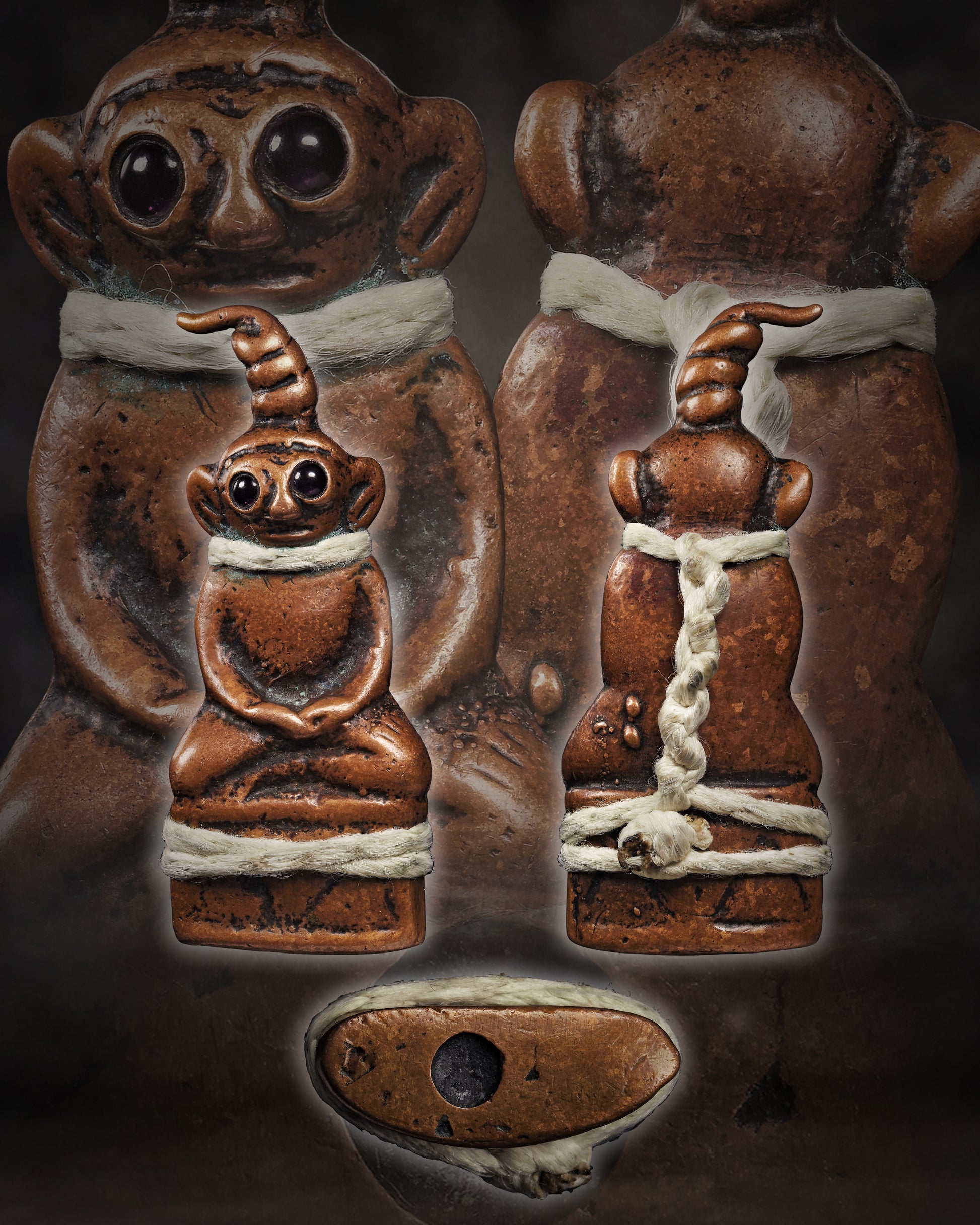 Ps:距今大约20-30年,通体野铜材质,肉瘤包浆自然,眼睛采用石榴石制作,石榴石本身就具有驱邪控灵的作用;我在底部的铃孔里加入了阿赞并的590膏(来自阿赞舍)在魅力方面体验更强大,价格不高,品相优美,适合刚入门接触拍婴的玩家