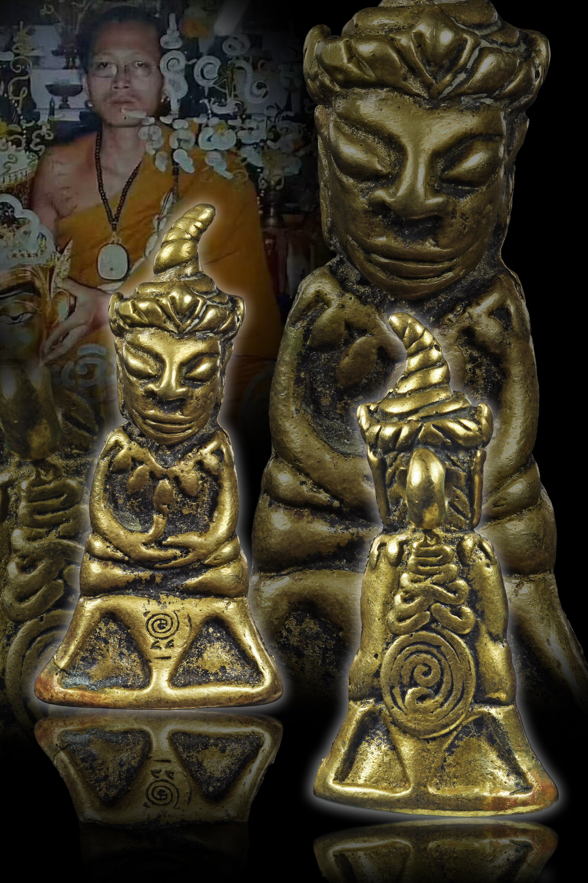 - 他让他的弟子们从柬埔寨购买已经具备良好品质的旧 Ngangs,按照他的模具将它们熔化成 Ngangs,并根据 Somdej Lun 传承进行吟唱。因此,它被当作古人隐藏而不为人知的好事,带给弟子们供奉。