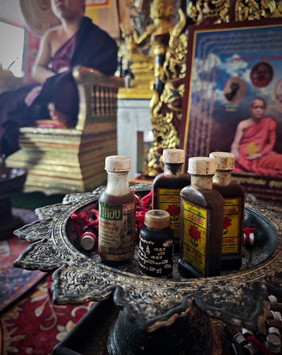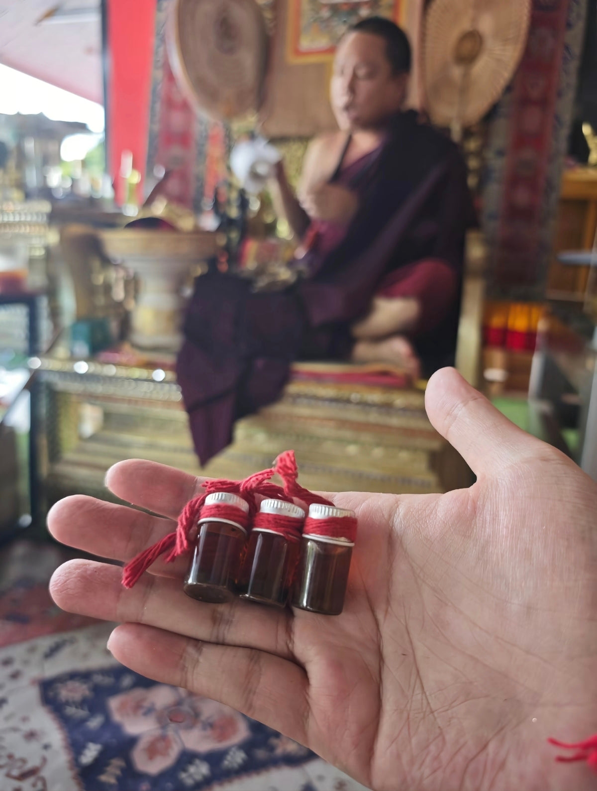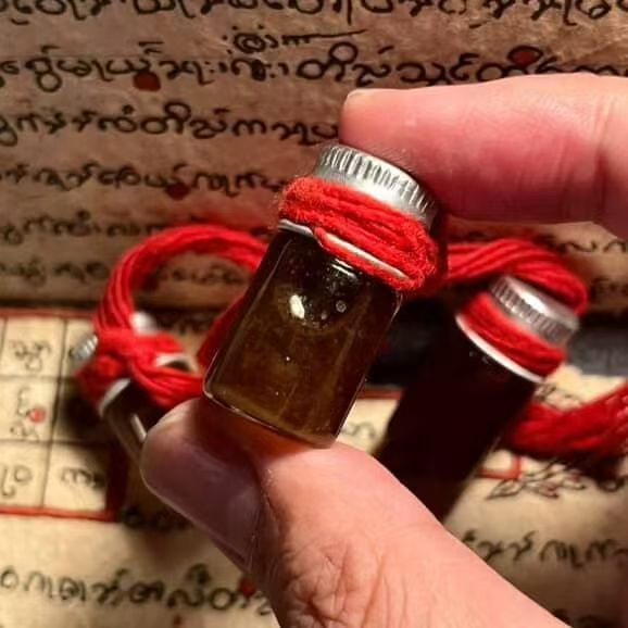 因为其中含有太多灵体,师父觉得如果100%的纯尸油不加稀释,信徒恭请请后极度容易发生灵异事件,所以加入了传说中“น้ำมันไก่แดง” ——红鸡油,来调和与平衡阴阳