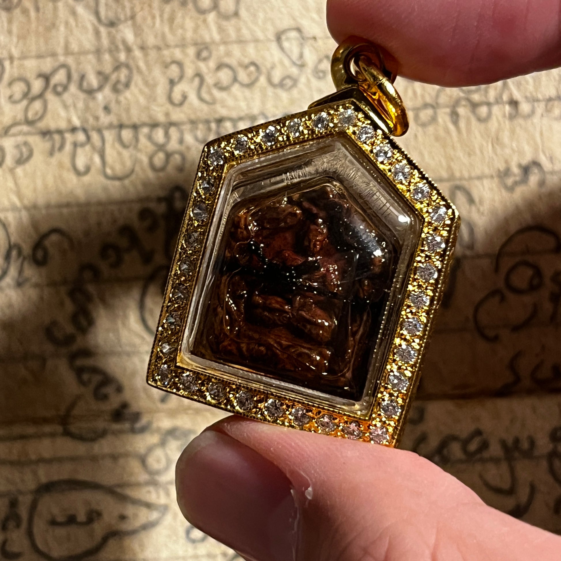 这批圣物阿赞奥除了使用龙婆碧纳的法门以外,还融合了他多年来在柬埔寨,老挝,缅甸学来的法门,分为混油版和不混版,混入的油是一种名叫月圆油的人缘油,此油必须在每个月圆之夜加持,师傅说混入的油至少加持了5年之久,成愿之力非常强大。