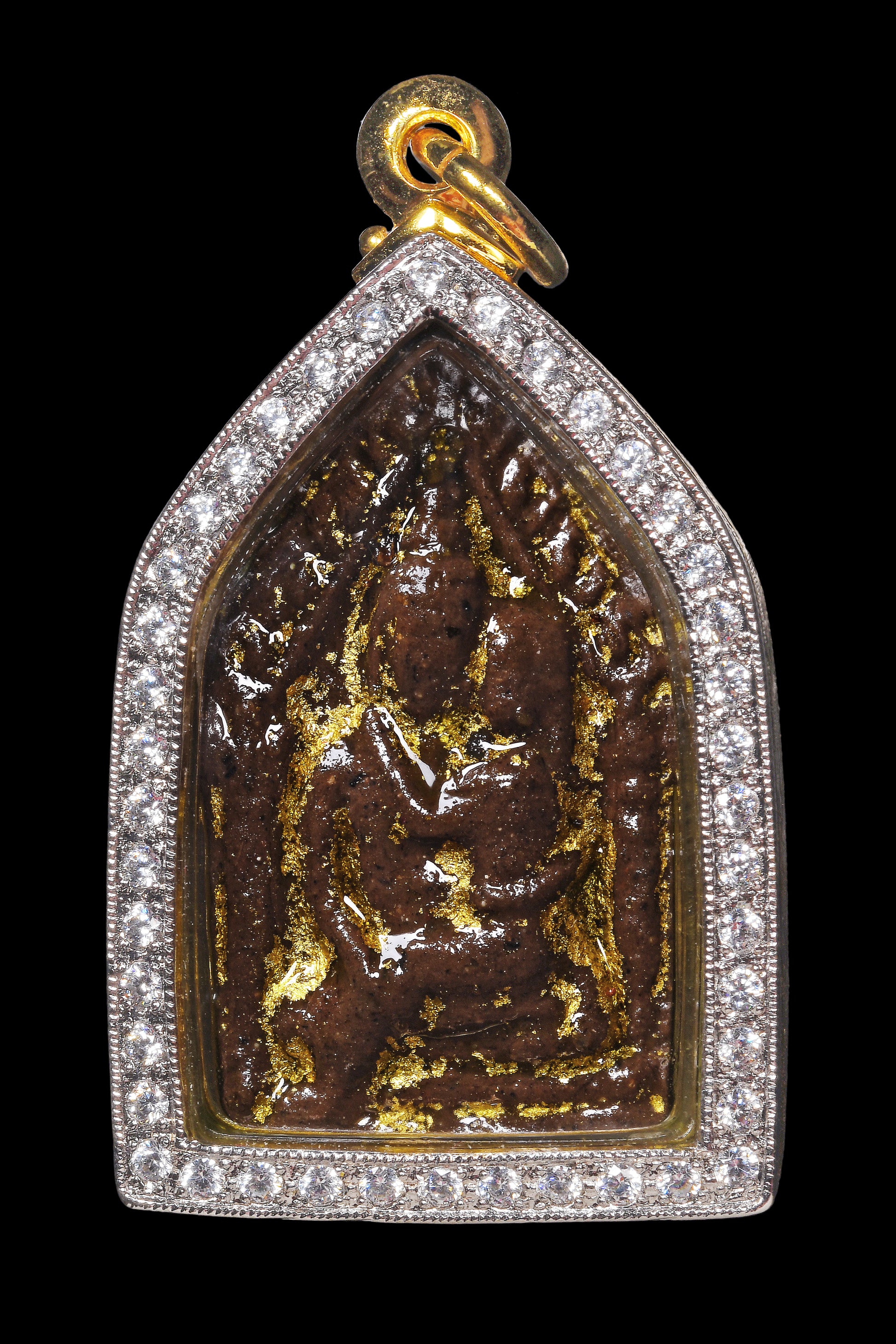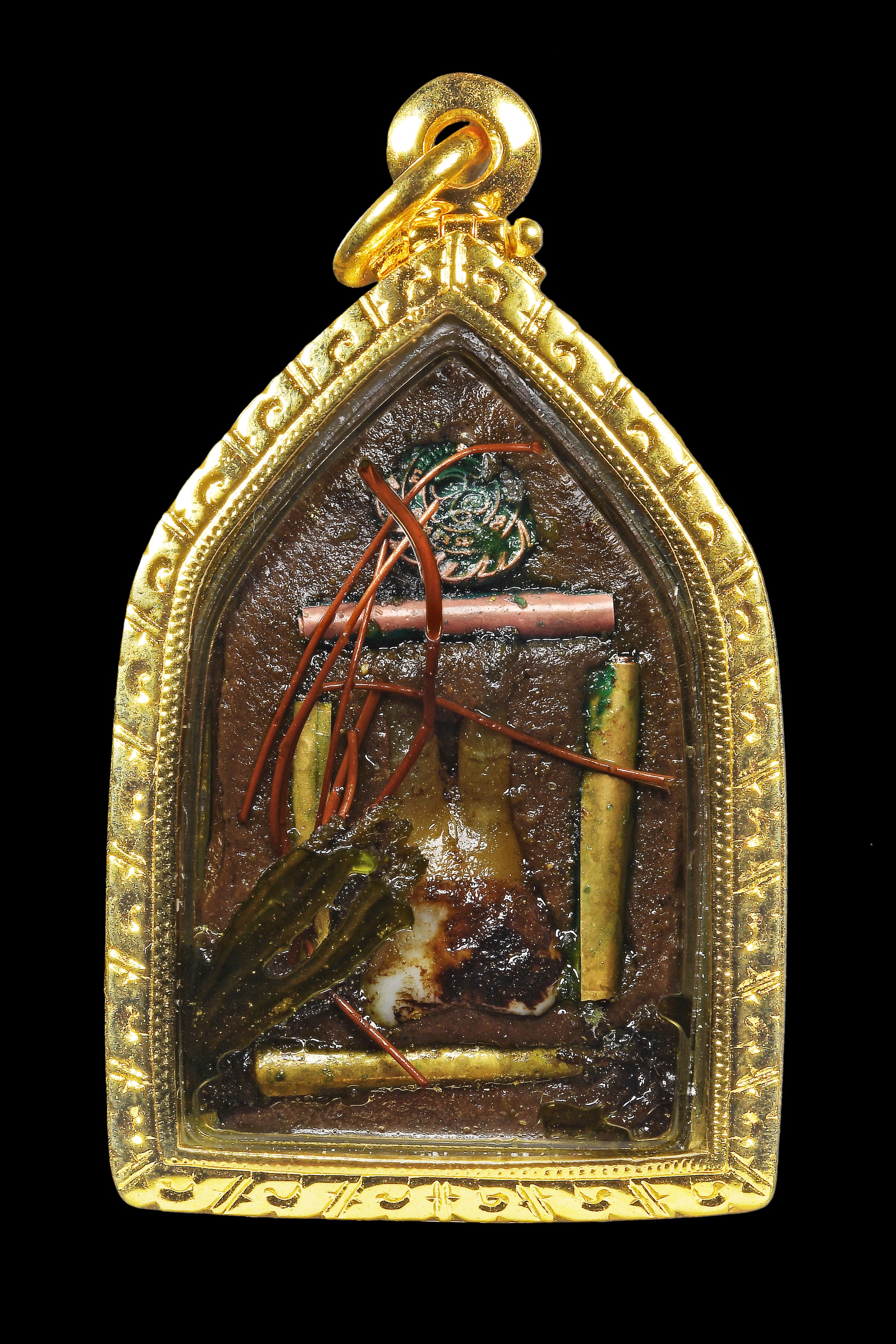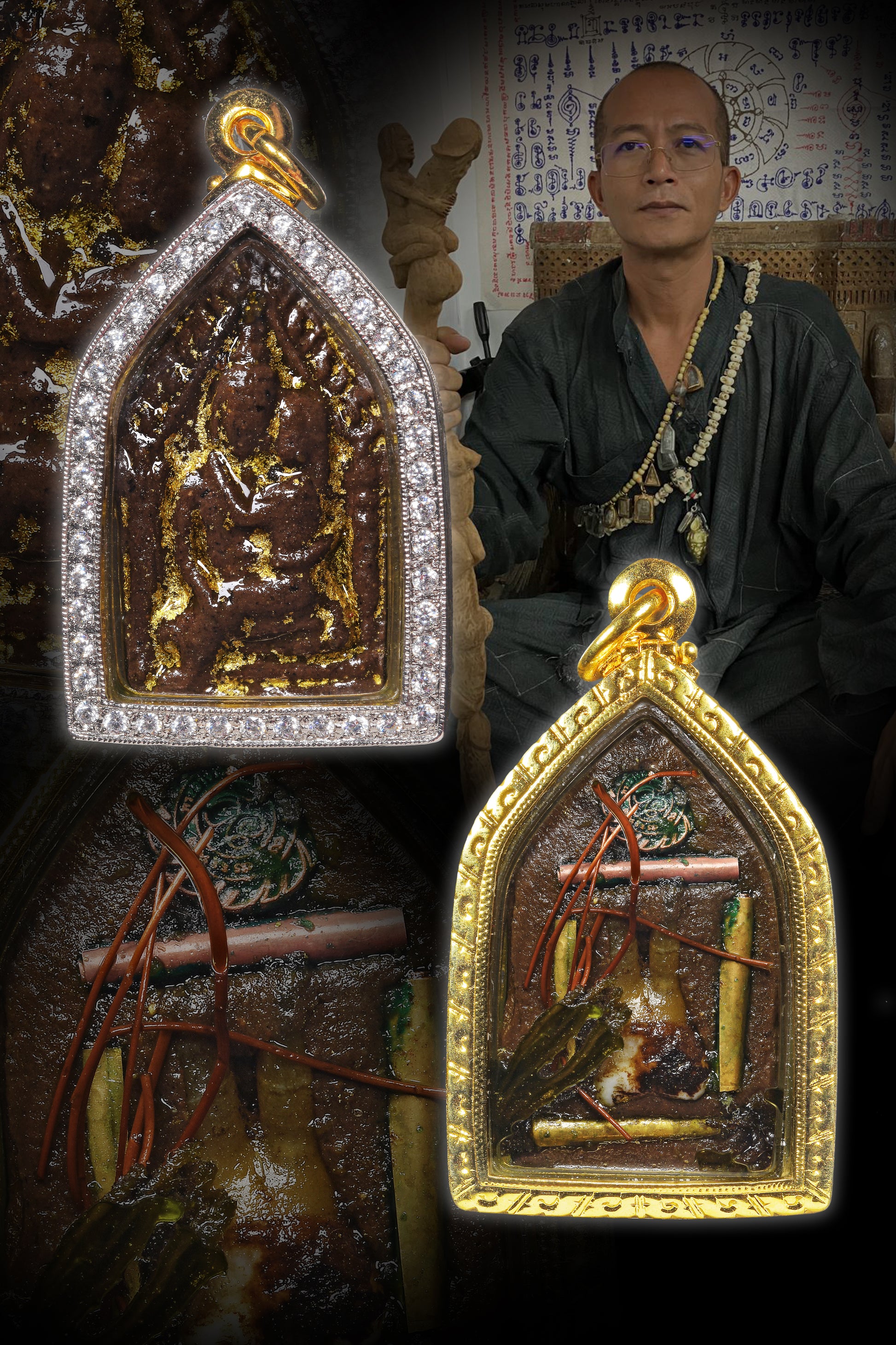 ps:帕阿赞奥从泰国🇹🇭、缅甸🇲🇲、柬埔寨🇰🇭的庙宇中收集到的不同寺庙庙土混合在一起,并将这些庙土放在圣水罐中浸泡一年后取出再加入菩提树粉末、老坤平碎粉、手写经文粉末、香灰压制成法相。用圣土制作佛牌圣物是最古老的制作佛牌的方法,并且人们相信并尊崇泥土为“恩人神”或者是“土地女神”,万物生于土地,繁衍于土地,归于土地。