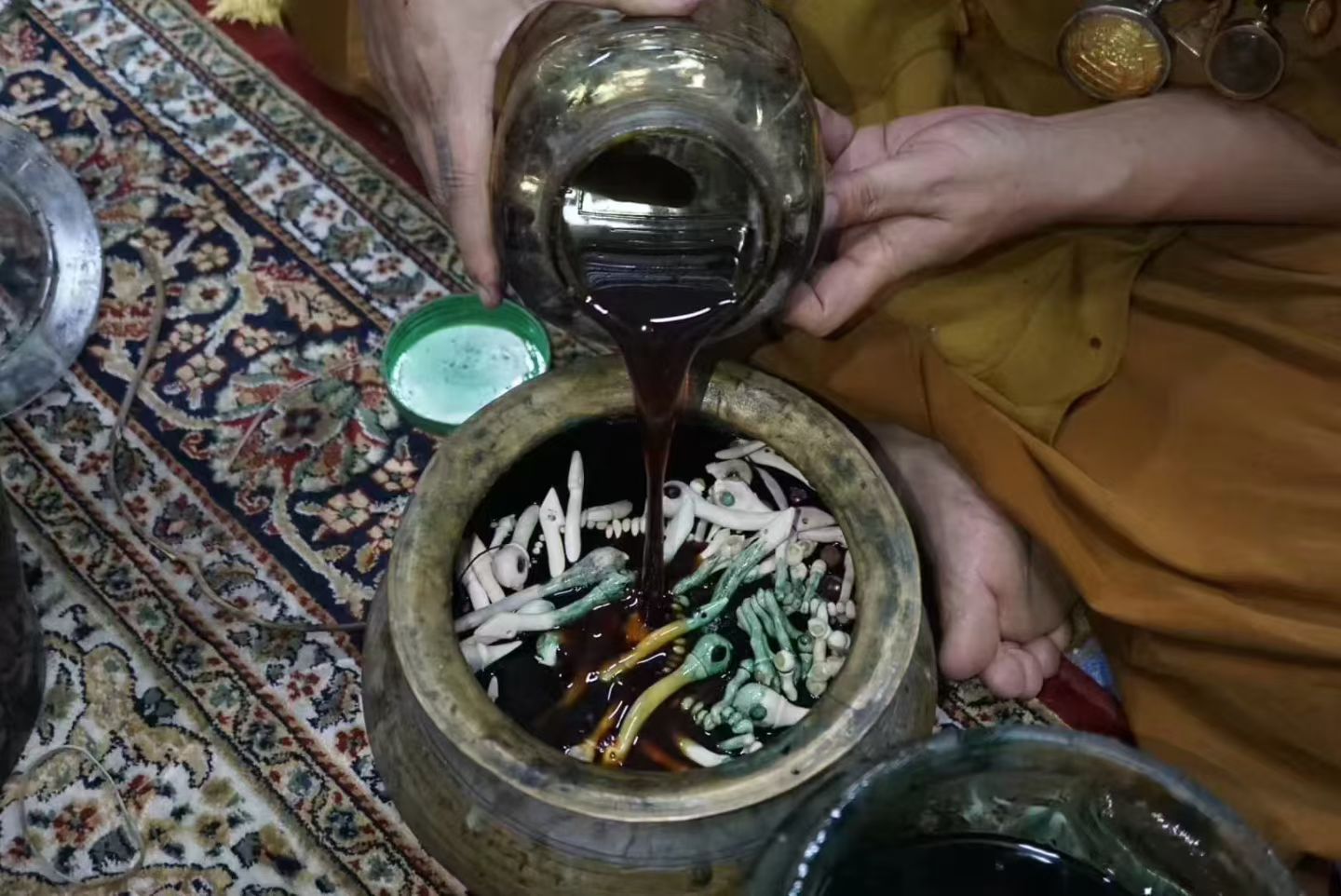 纯手雕刻,骨料,“蝌蚪”头部内侧大量圣料,包括pina的咩南红。浸泡在阿赞奥加持十几年的翡翠油中加持数月,所以成愿能力极强,佩戴即可以让佩戴者拥有无限的人气,无限的吸引力,无限的流量,就相当于一个流量磁场。