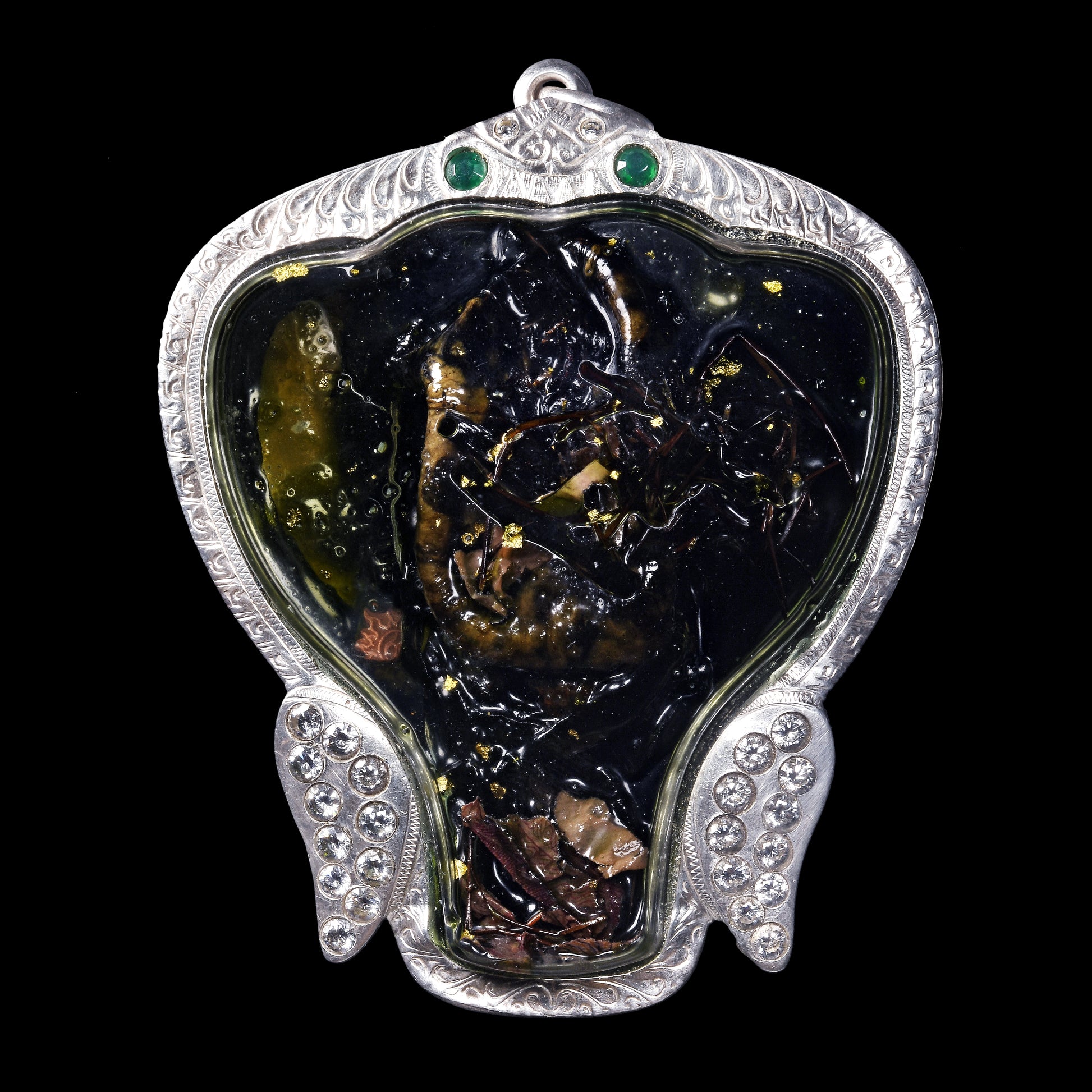 阿赞奥早期孤品,仅制作一枚!取自大象之主的眼睛,浸泡师傅最出名的翡翠油,背部嵌有由天界法术加持的象神符片以及符管,非常罕见、能量强大。据说,它能吸引所有人的目光,让人看一眼就心生喜欢和好感。