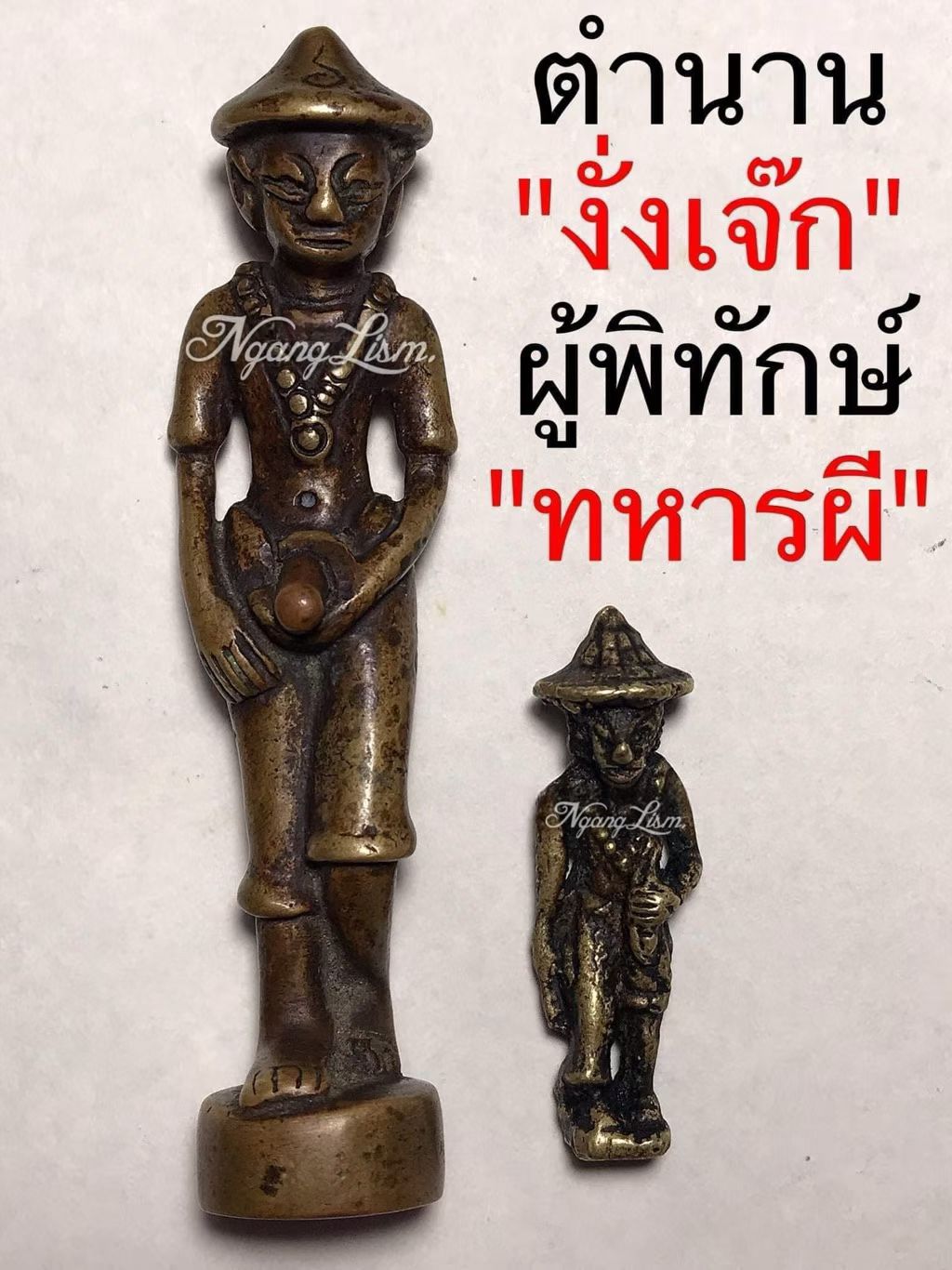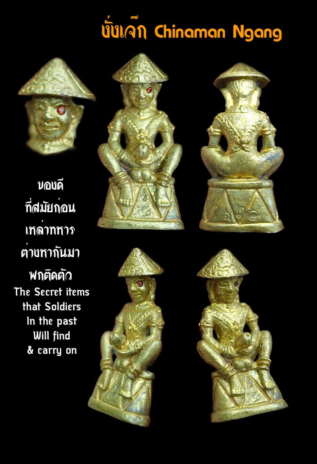 ​这座 Ngang Chek 开光由阿姜加姆开光,主要关注魅力、慈悲和感官愉悦,因为在当今时代,我们不必像战争年代那样战斗,而是想要更多的工作、金钱和爱情。但它仍然采用了独特的风格,即戴着类似古代士兵的帽子和服装,阴茎象征着性。