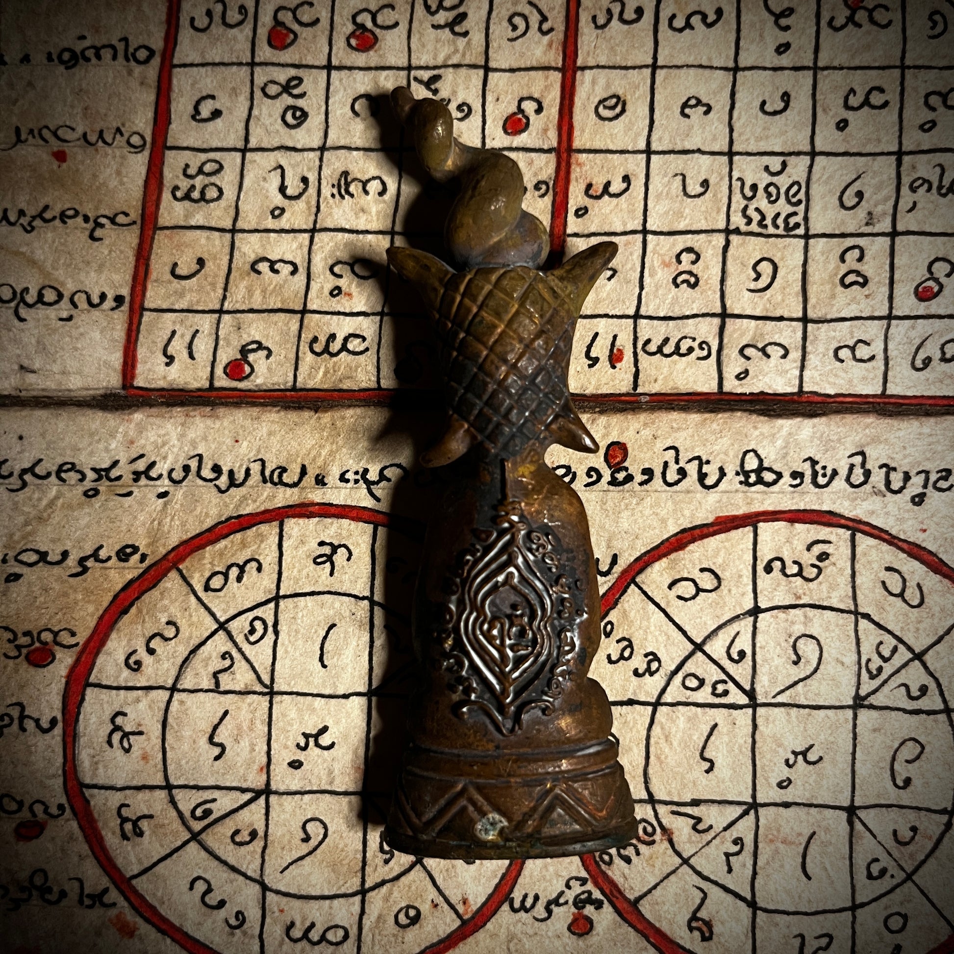 从甄选圣材到铸造工艺,每个细节都一丝不苟。这包括 熔化经德高望重的僧侣开光的护身符和钱币,制成内部的钟(称为“Kring”),以及将锡、锑、蓝铜(Jao Narm Ngen)和银与泰国黏土混合,形成传统的青铜合金。所有工序均遵循古老的配方,力求打造出最原汁原味的神圣帕暗。