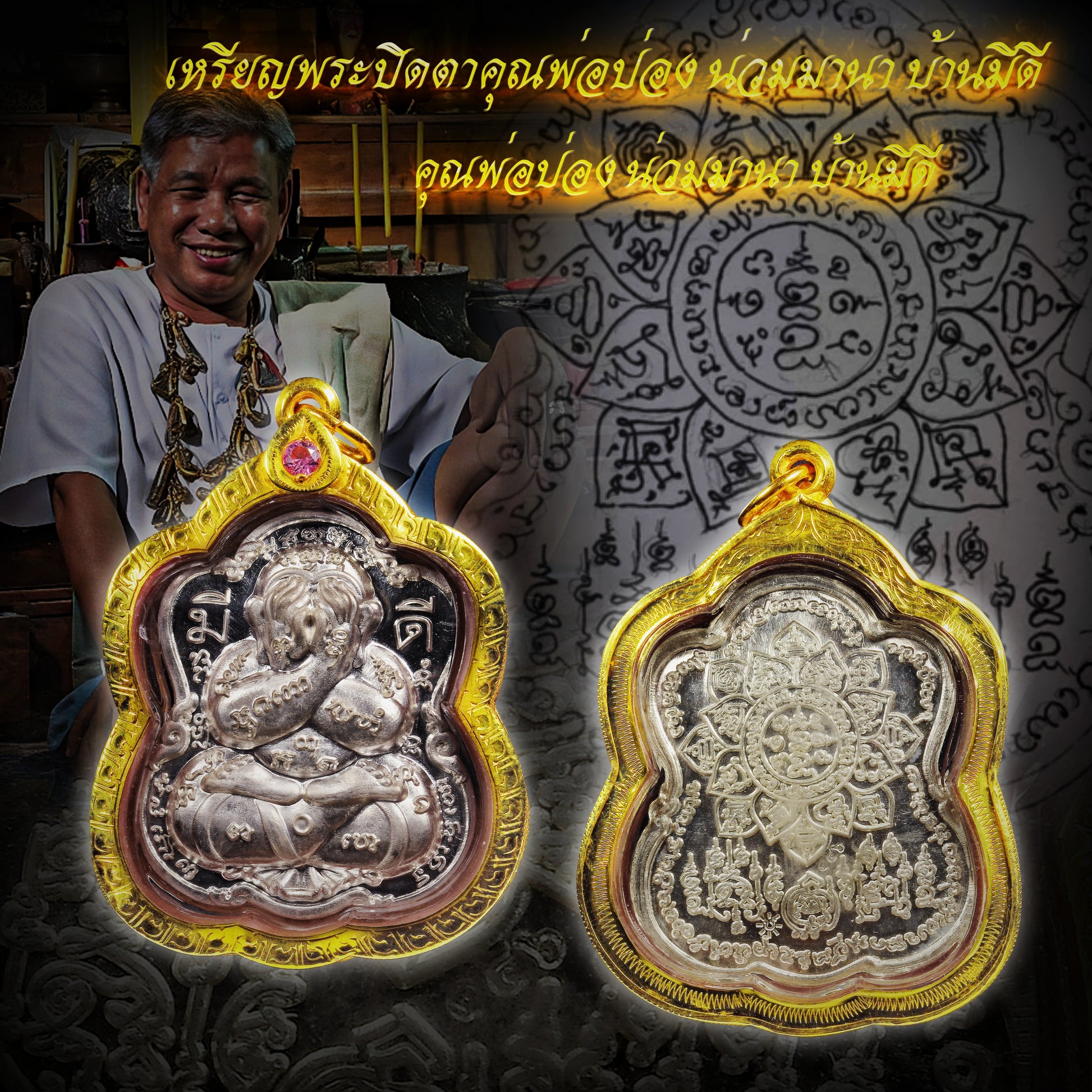 2566年BAN MEE DEE 拜师法会版!魄们婆旁和阿赞颂boon两兄弟合力画符聴系最顶级莲花经咒符片来作为主要圣料熔合制作加持!