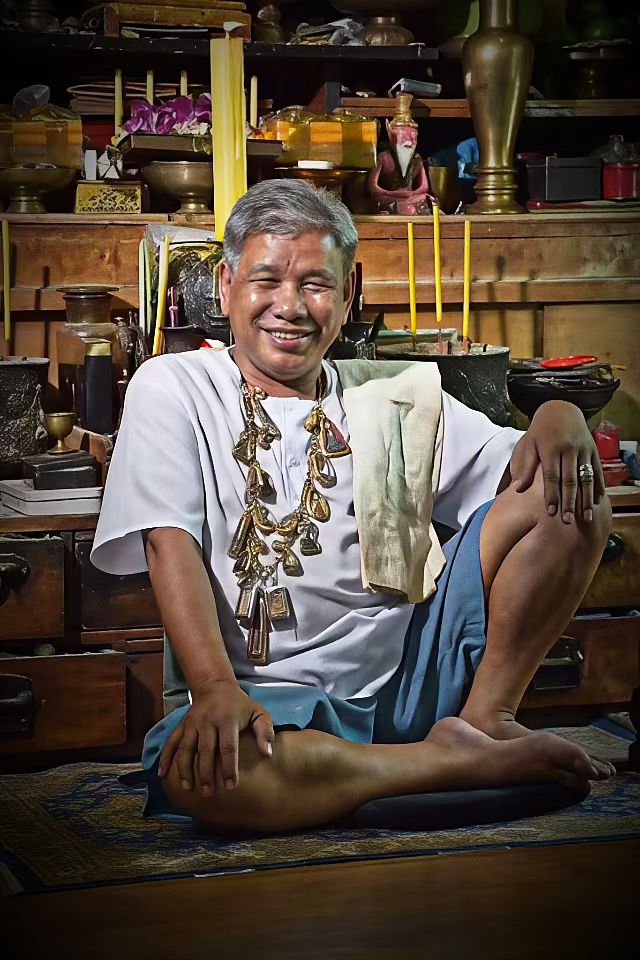 每天清晨魄旁拜完法坛的佛祖天神祖师爷以后,都会双手从头到脚来念咒施法加持自身,恭请祖师爷之后才来帮助善信!在泰国法术里叫ชักมงคล,其中很重要的一个环节就有双手交叉掩面的动作!也就是这一期掩面双手交叉法相的原型!