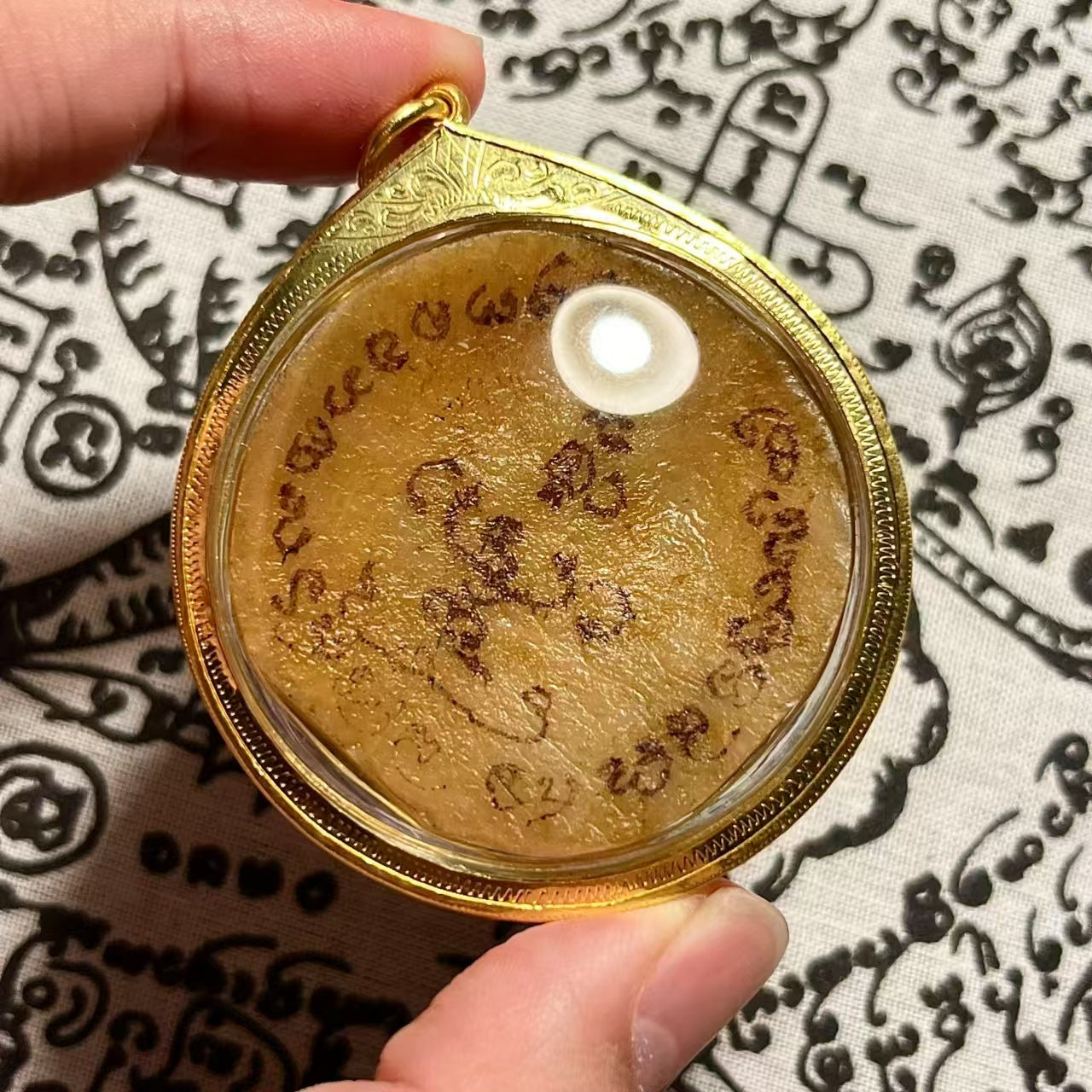 Ps:这尊是阿赞查能还在和尚时期的作品,采用泰北23岁溺水女鬼的天灵盖中间部分,正面反面都雕刻上了控灵经文,除此之外另有加入一种极为特殊的法术鬼油,因为宗教管理机构限制,师傅未有对外公开材质,开光99日后阿赞查能再交与自己三位授业恩师协助加持开光整整三个月,不论从材料、开光和功效来讲都是不可多得的好圣物,朴实无华真真实实的力量,强力招财招揽人缘助佩戴者成事,提增魅力旺桃花异性缘,可为佩戴者带来意想不到的意外财富和收获,令各行各业生意人在事半功倍中获得最大利益和收获,招揽贵人给予实质帮助。
