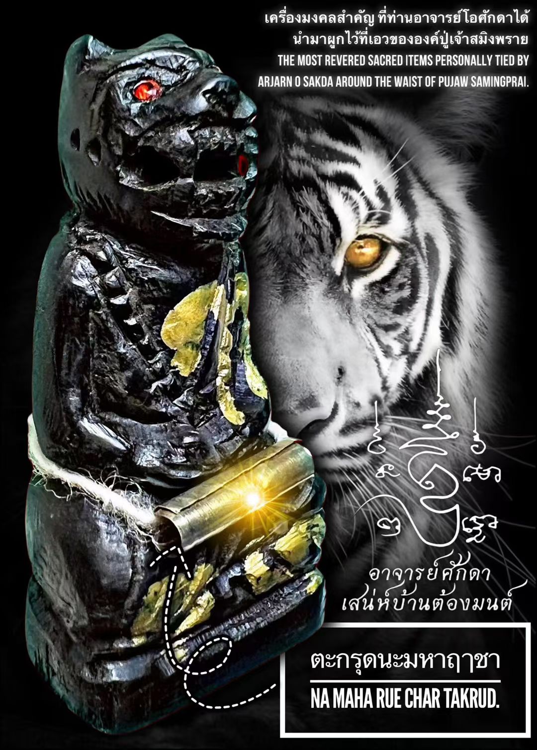 Arjarn O Sakda 在佛像上刻下神圣的文字,并精心举行了开光仪式,以祈求祖先大师 Pujaw Samingprai 的灵性,仪式遵循传统的经文和仪式,一丝不苟、精准无误。Arjarn O Sakda 特意打造了这尊特别的佛像,以展现其至高无上的魅力,提升他所制作的所有护身符和护身符的力量、效力和神圣能量,使其提升到一个新的灵性境界。因此,那些已经尊崇他佛像的弟子和信徒们,千万不要错过将这尊 Pujaw Samingprai 佛像与他的其他作品一起供奉的机会,以最大限度地发挥它们的灵性协同作用和功效。