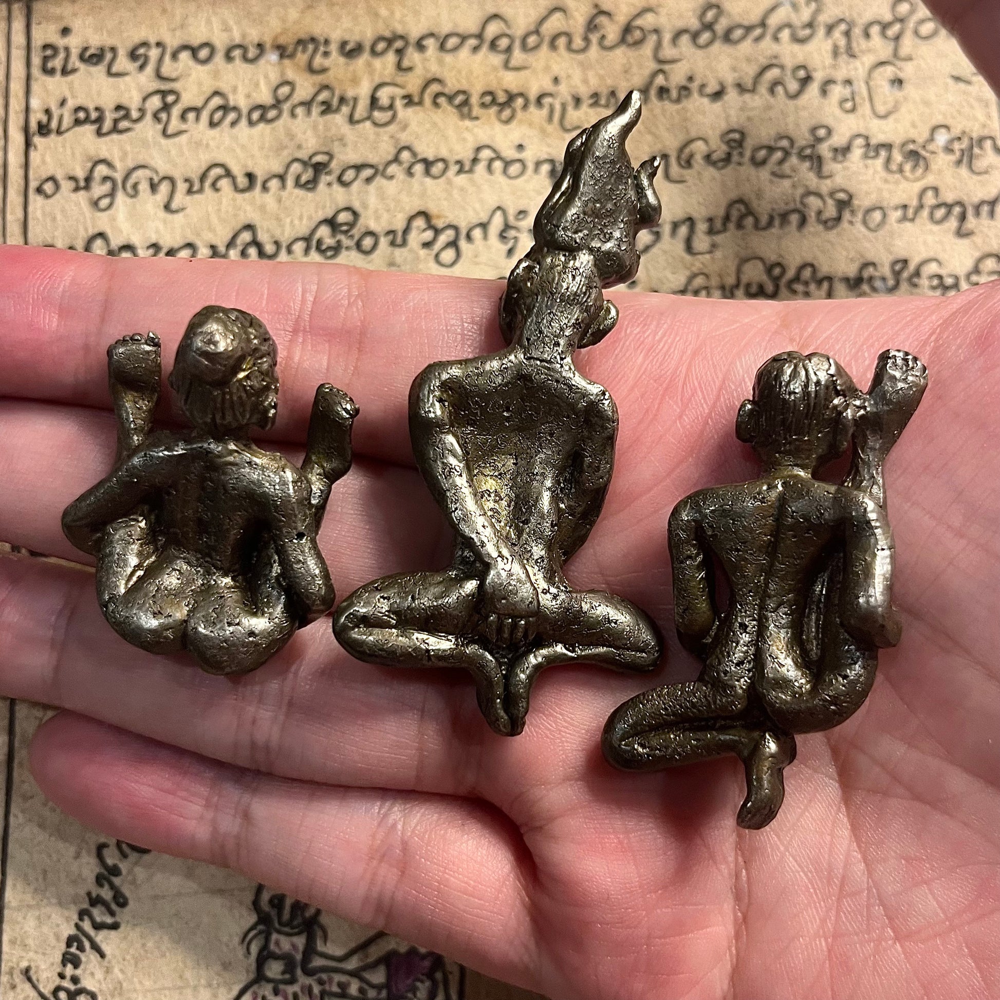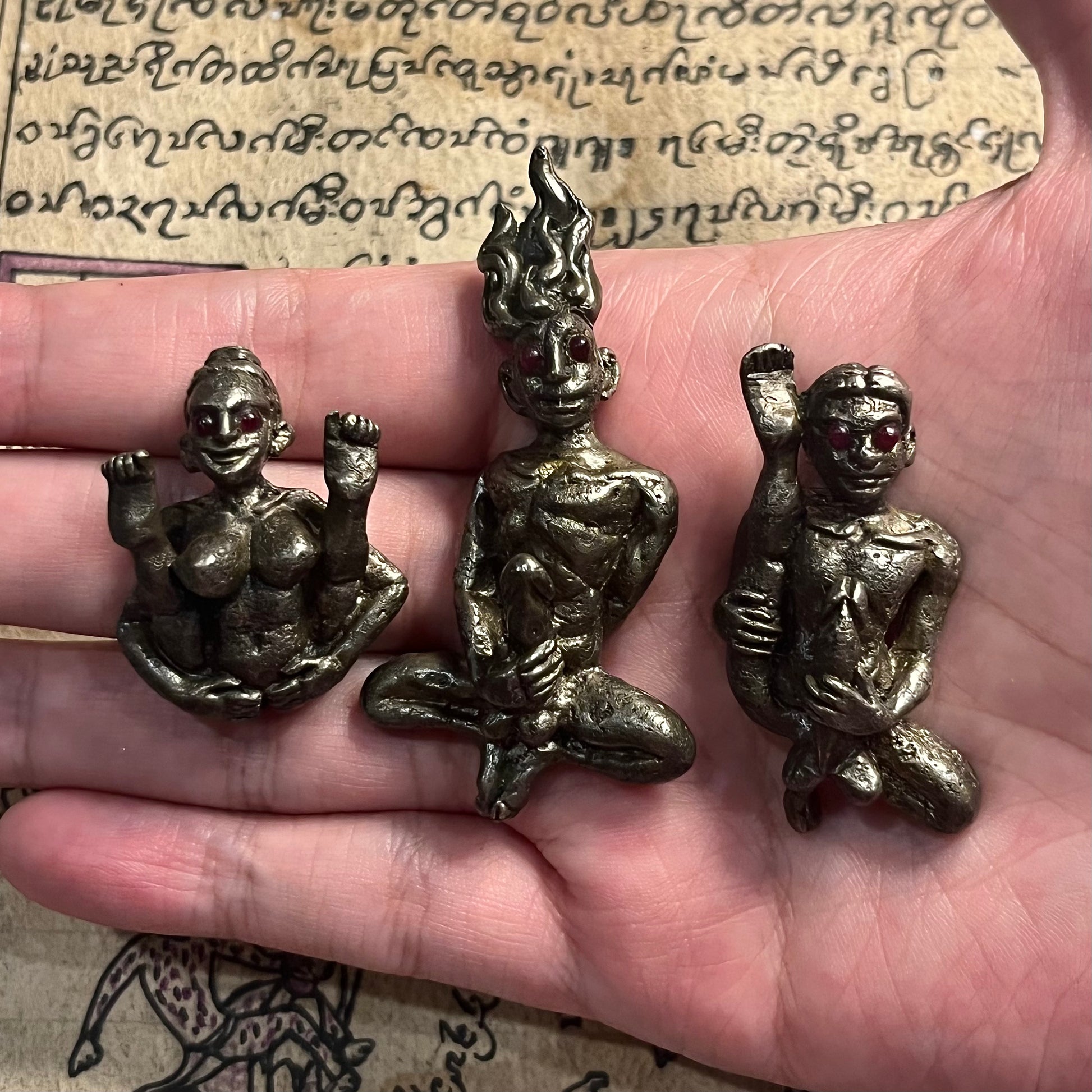 为打造此版本,阿赞奥汇集历代铜牌材质,精心铸成这套“亚当大帝、指天婆炎、指地湄珀”圣物,并加入其个人与弟子珍藏的旧铜牌,以“均势”法门加持,使之成为铜牌界顶级护身符,值得每一位爱好者珍藏。