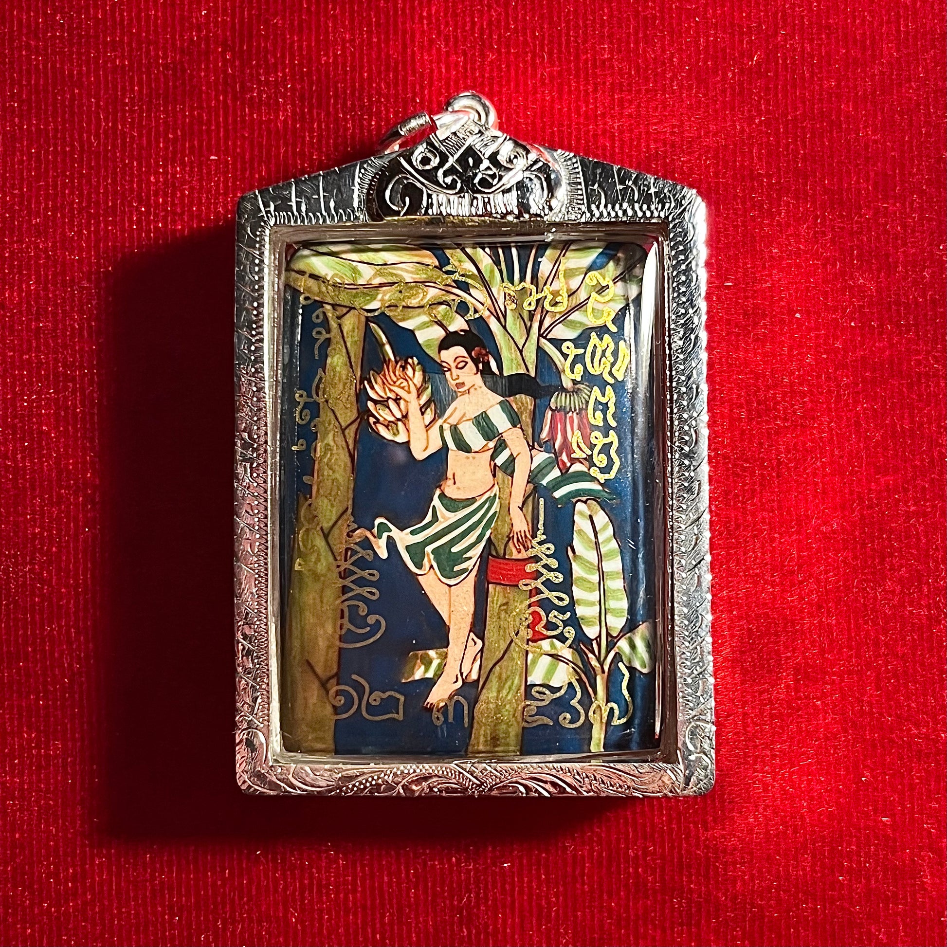 阿赞奥与这芭蕉精灵结缘也是机缘所致,而非刻意为之。故事是这样的:附近一些村庄的果园主人经常看到一个女人站在芭蕉树中,不分昼夜。这件事一传十、十传百,渐渐传开。有一次,一个渔夫晚上经过附近,看到芭蕉树中有一处房子,但白天再次经过时,却怎么也看不到房子。经过几次后,渔夫害怕了,每次都绕路去捕鱼。随着知道的人越来越多,大家都开始害怕。直到有一天,一位男子前往阿赞奥的寺庙寻求僧人的帮助。阿赞奥听过此事后,立即派自己的徒弟——必须是六周生且是断掌之人——前去割下芭蕉树上的神秘之花。阿赞奥得到芭蕉树花之后,通过仪式请古巴阿赞天神佛祖共同加持,以佛法净化此芭蕉精,从而使其蜕变为「仙子」,毫无戾气与怨气,唯有一颗慈悲心!!