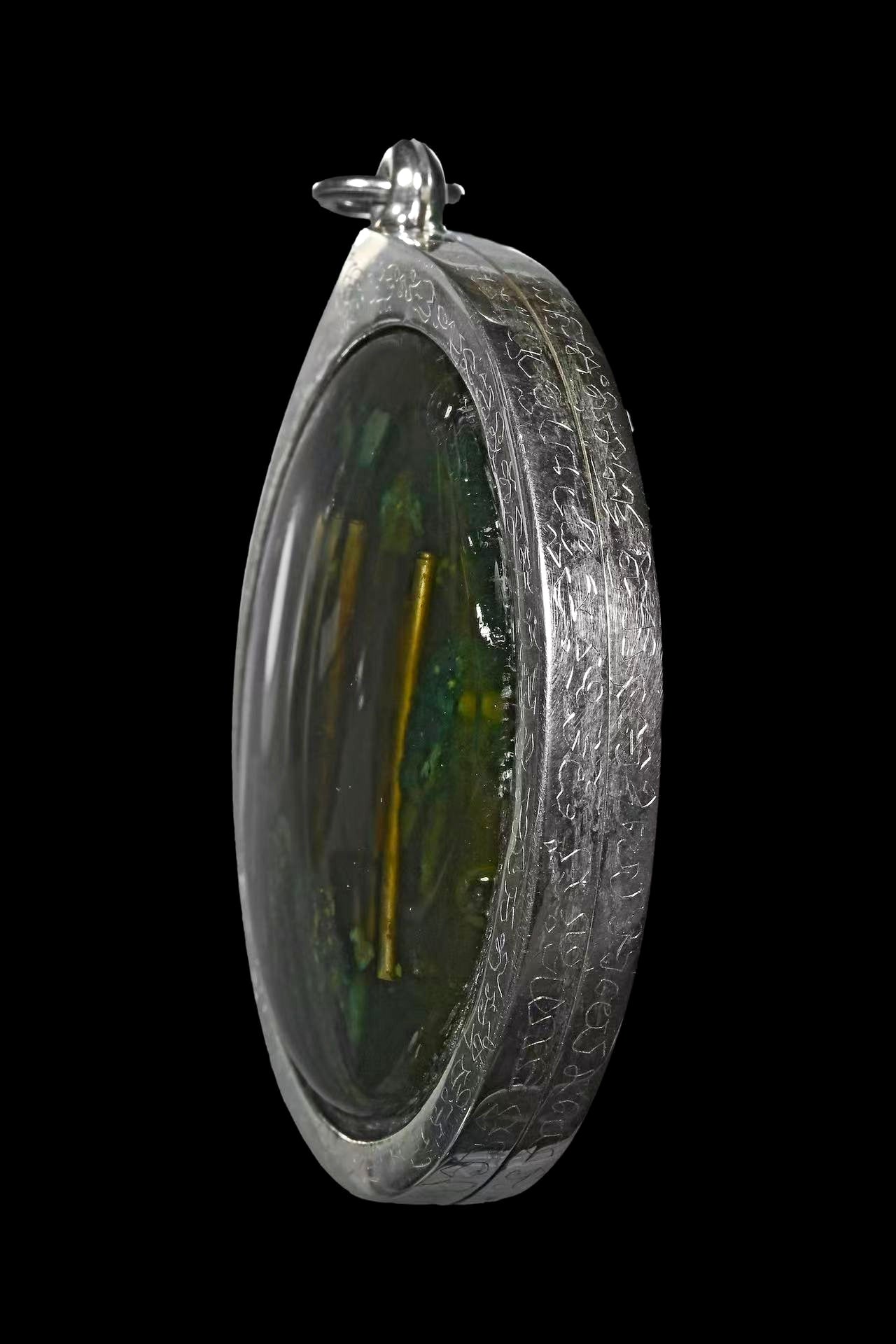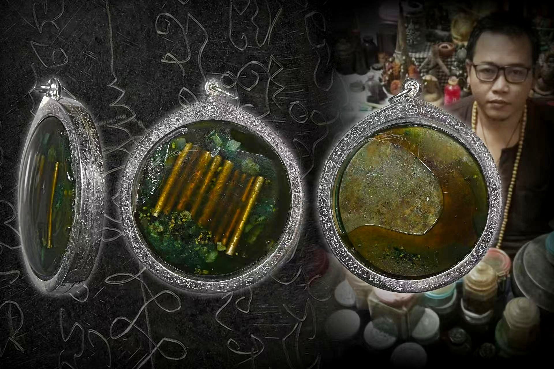 师傅定制厚纯银壳,手工锻造,外刻刹利派核心愿文:มหาอำนาจ แคล้วคลาด(权势聚身 · 灾祸不侵)咒印三锁:术坛绘符三重魂锁,主愿达成后不游、不返、不扰主!日常供奉佩戴者食用的饭菜即可!派系无需心咒,多紧握静心感应,如有愿望,写在纸中,心求告知成愿如何还愿后将圣物压在纸上,契约达成她自会全力以赴,另外师傅特地叮嘱她会自己寻找她的主人,所以切记随缘结缘。