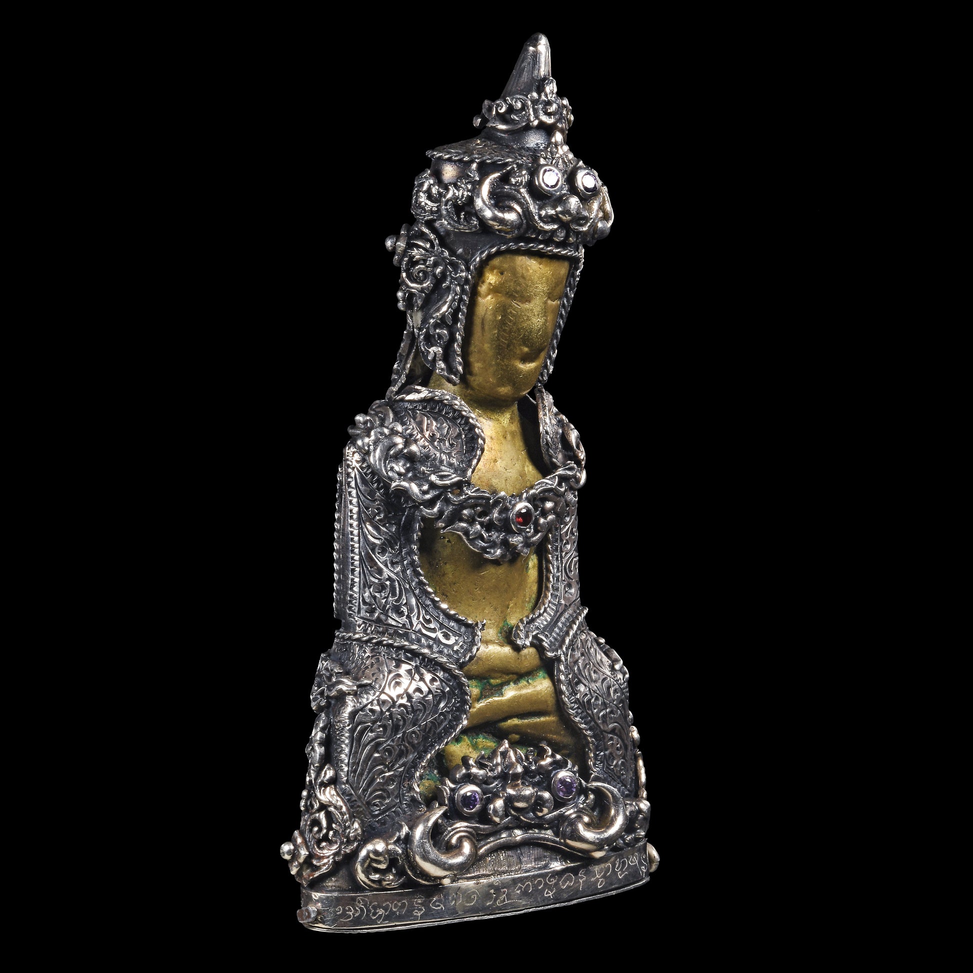 据师傅说前任主人是一个东北部的巫师,用于降伏恶灵和增强运势,也跟随了师傅和徒弟们参加每一场法会和每一次加持,定制纯银雕花宝石盔甲,分体可拆卸。底部一圈师傅亲手刻符(关于魅力吸引力的咒语),绝对顶级的收藏级阴性圣物