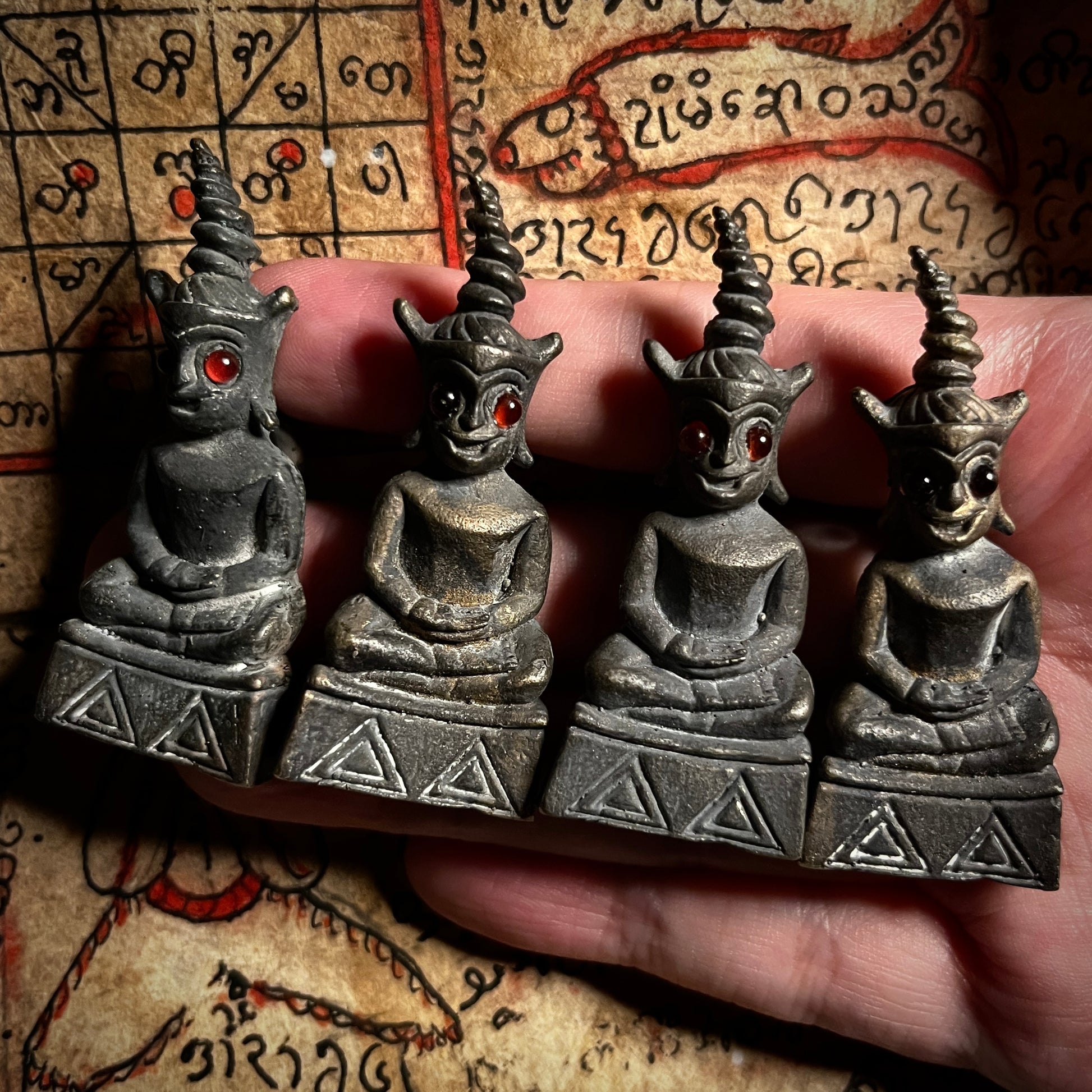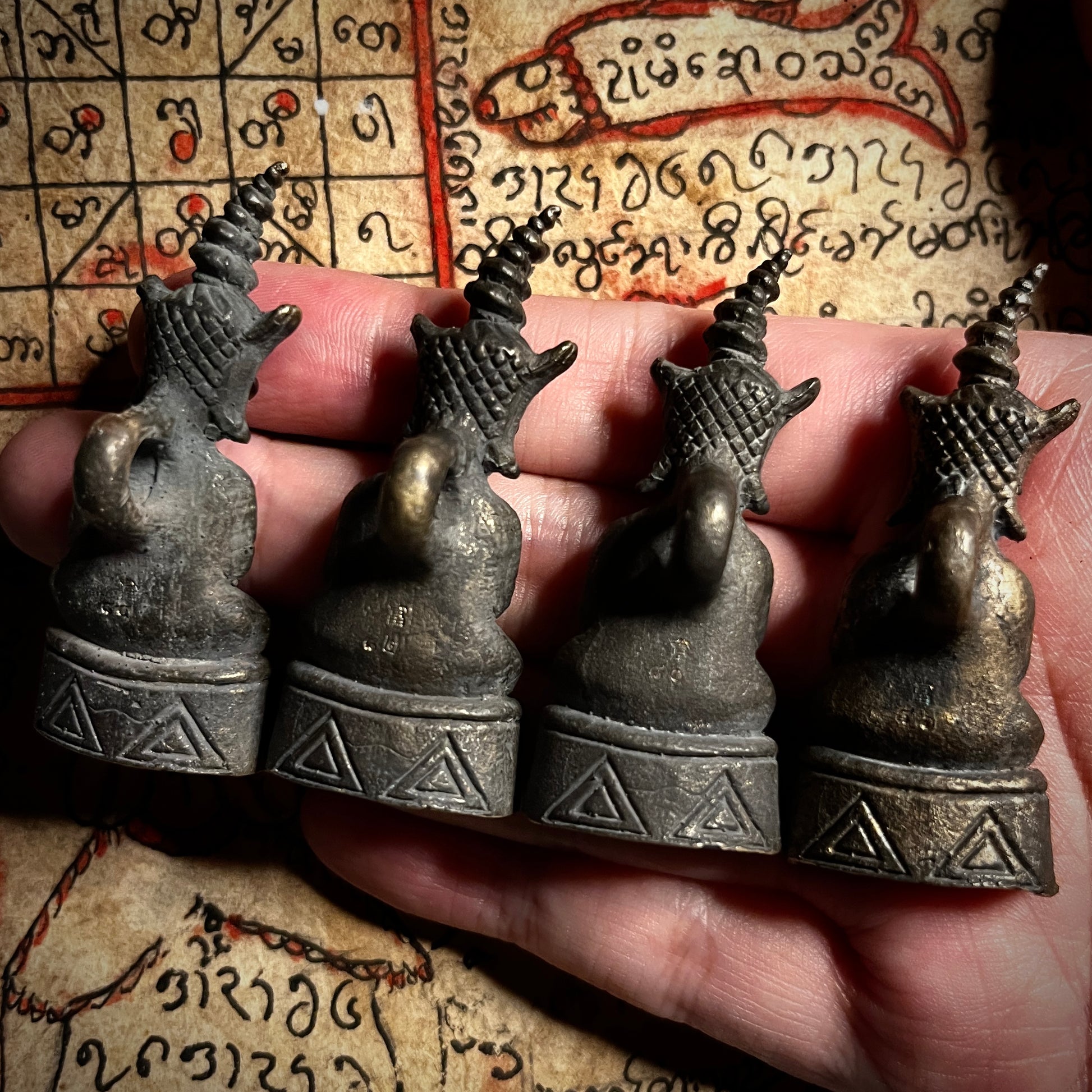 阿赞翁阿特大师创作此拍婴的初衷,是为传承古高棉王国瓦曼王朝时代几近失传的古老秘法。这些法术被铭刻千年,随王朝覆灭而湮没于历史。铸造材质集古代王朝青铜精髓:堕罗钵底、单马令、罗涡、室利佛逝、柯叻泰、哈里奔猜、西萨查纳莱、素可泰、阿瑜陀耶、兰纳、素攀武里——因泰语中“青铜”与“成功”同音,古人深信以青铜铸像制符可获神力加持。大师更融汇历代自制Ngang的特殊圣料。