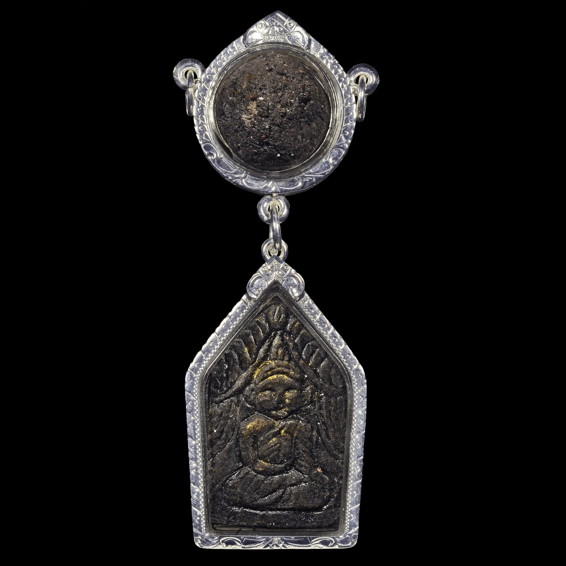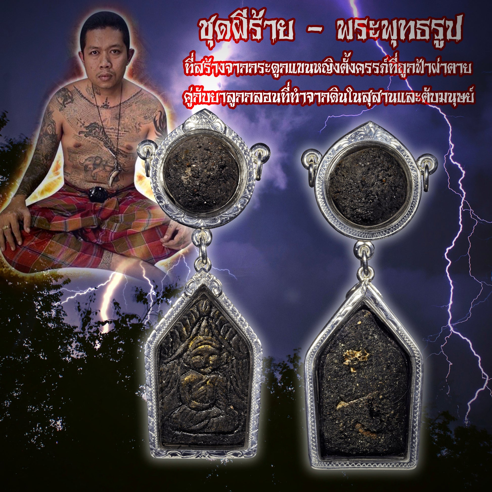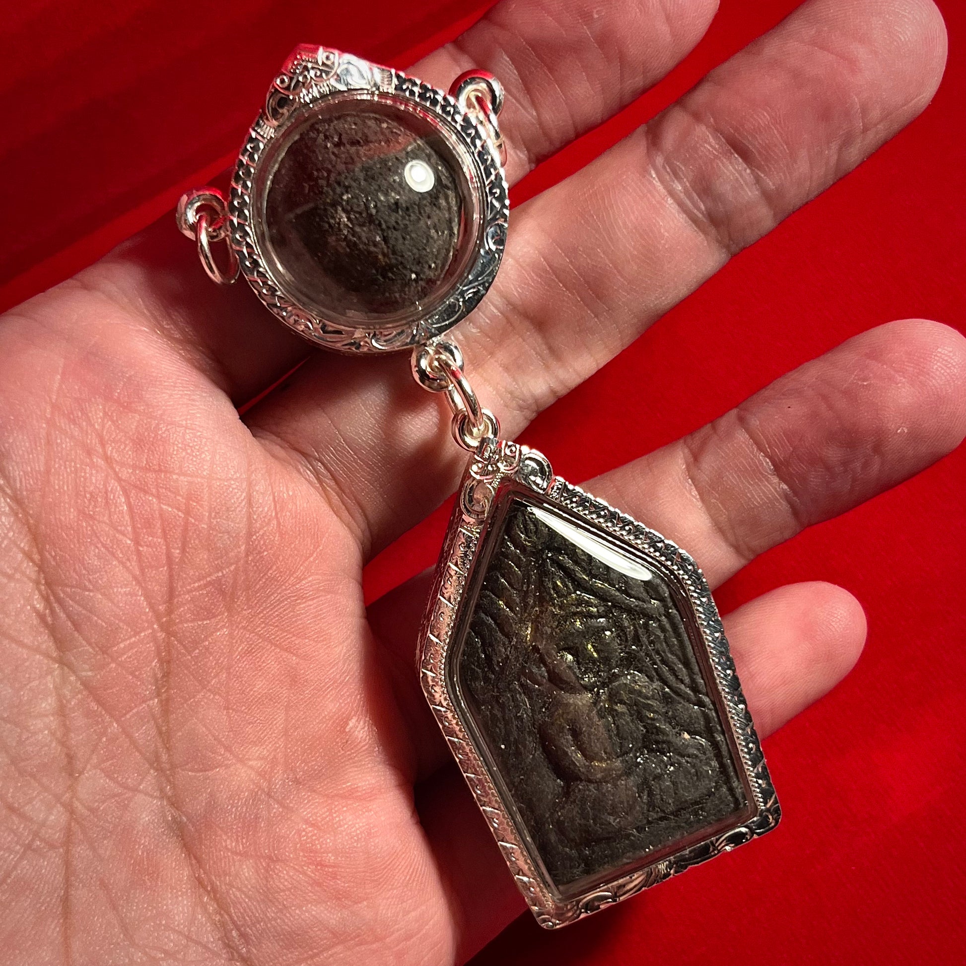 上面搭配的路翁是由其肝脏粉末,骨粉和阿赞并590粉混合而成,用于提升坤平的灵力以及赋予挡险避灾的功效。