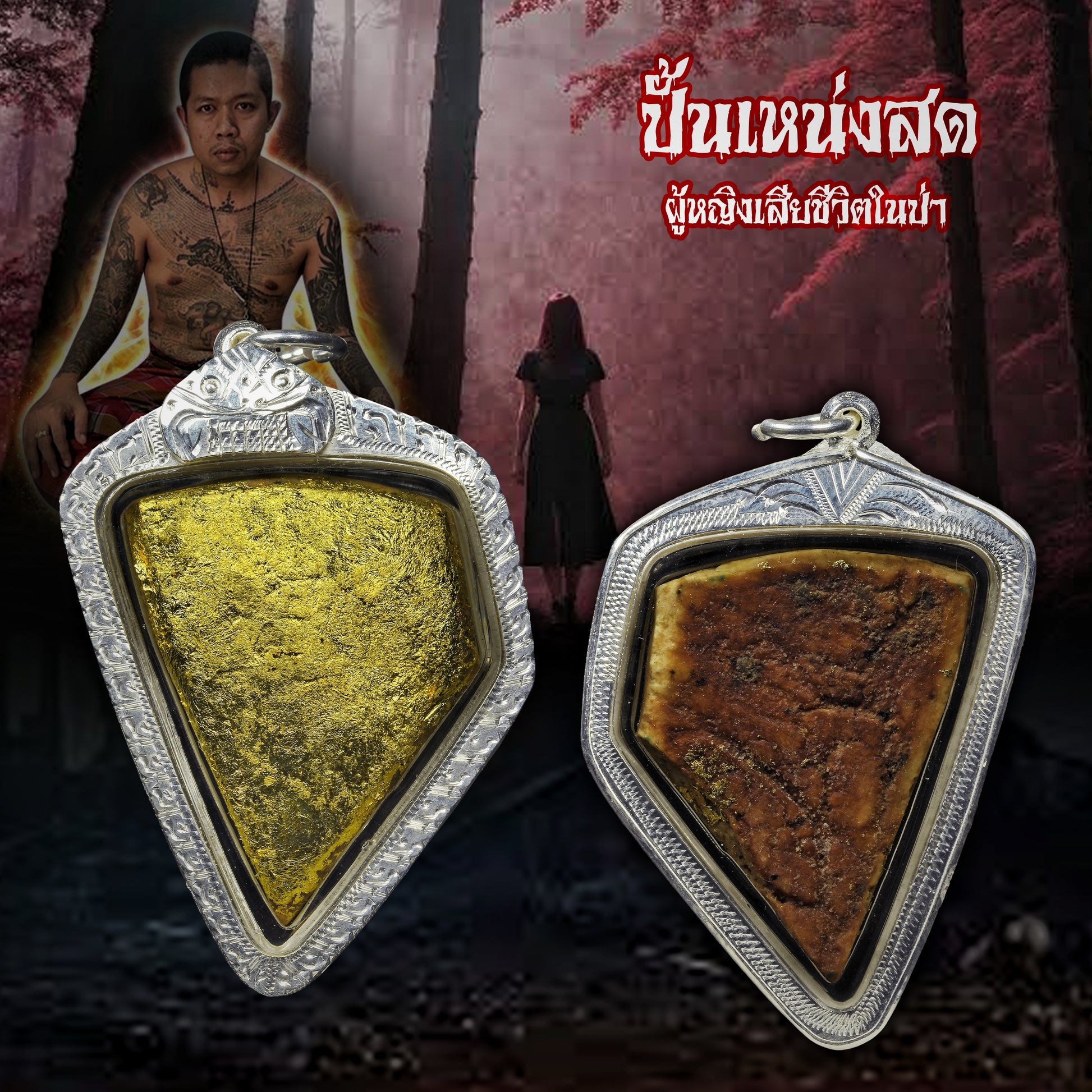 这套宾灵头骨全部来自柬埔寨边境,红色高棉(1979)时期被强奸杀害的女厉鬼,大约在佛历2549年(2006)阿赞舍的师兄用麻袋装了一部分带来给师傅,一起制作加持第一批猛鬼护身符,一共制作了大约8-10尊(不同的灵体),算是虎师最早的幽灵作品;经过长达3年的念诵,用形名口诀、三十二相、四大五蕴,以灵魂精神为主,许下愿,祈求,就会实现。