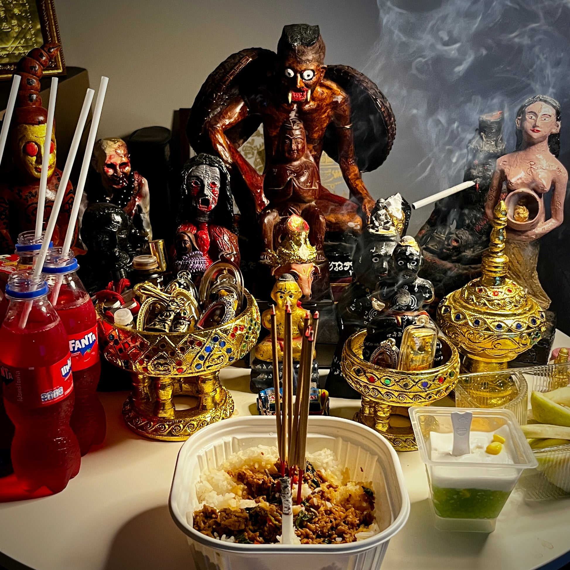 ps:28岁的老挝女子布恩,怀胎6月(首胎)在泰国打工期间与丈夫同住,却离奇从2楼坠亡,一尸两命。遗体于寺庙火化时,法师将母子骨灰与灵油共炼成圣物,封存于圣坛。此灵油法力极强,能吸引异性(无论男女),曾用于制作名震海外的「灵蜜·相思膏」,当日限量29盒即售罄。部分灵油更由高僧带往国外加持,用于制作金面符、爱情魅油。