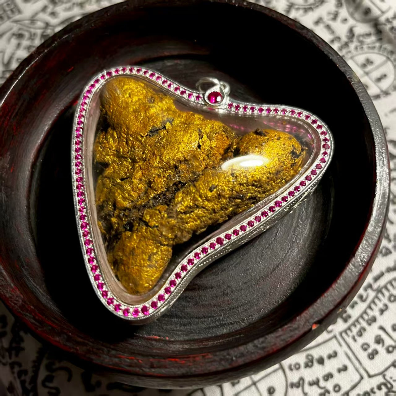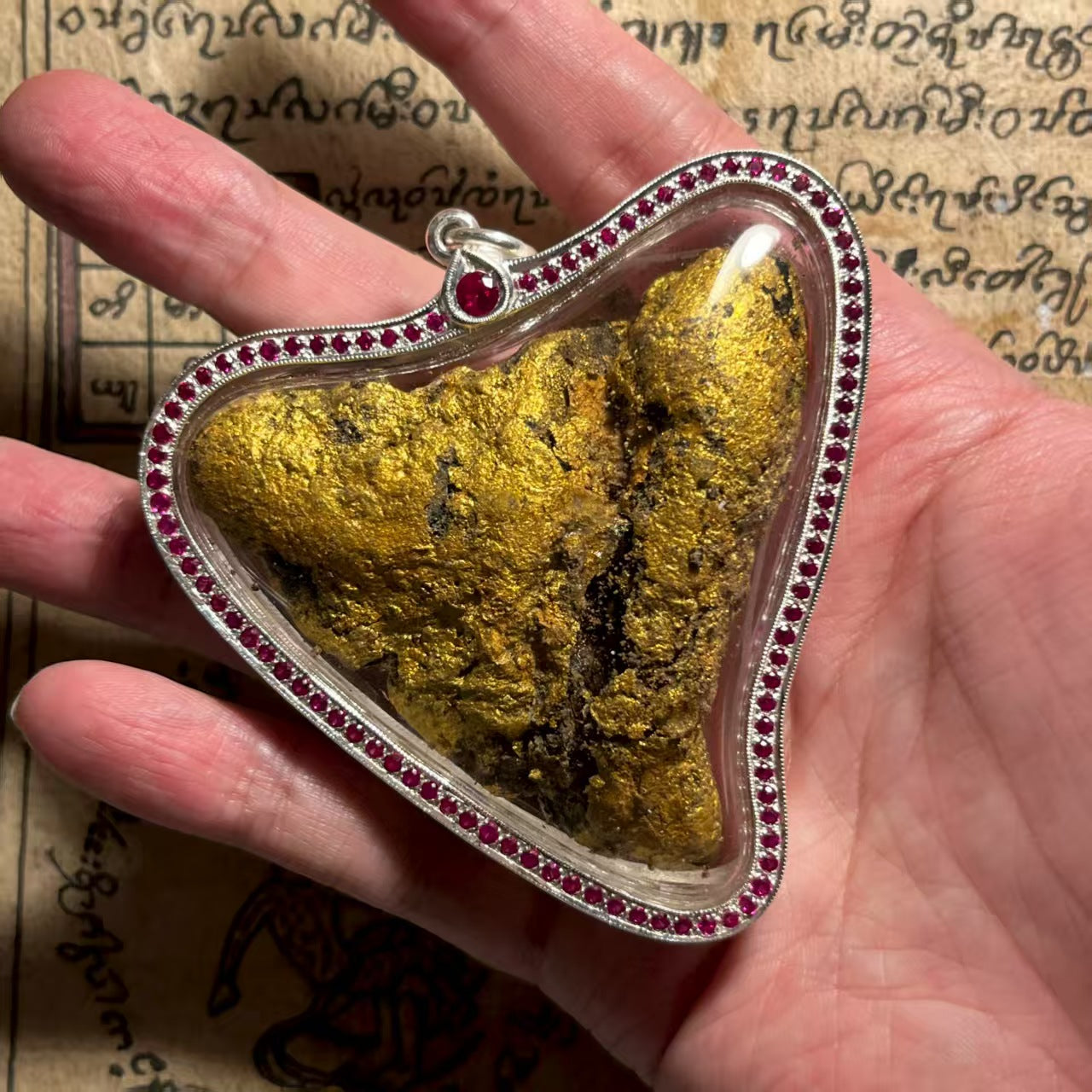 此女生前容貌姣好、肤色白皙,因自缢身亡怨气极重。阿赞舍自收得此灵体后,夜夜梦见长发女子环抱四肢温柔相伴 ;非以恐吓降服,而是以慈悲心请灵入体,将其魂魄封存于这颗年度最美心脏之中。