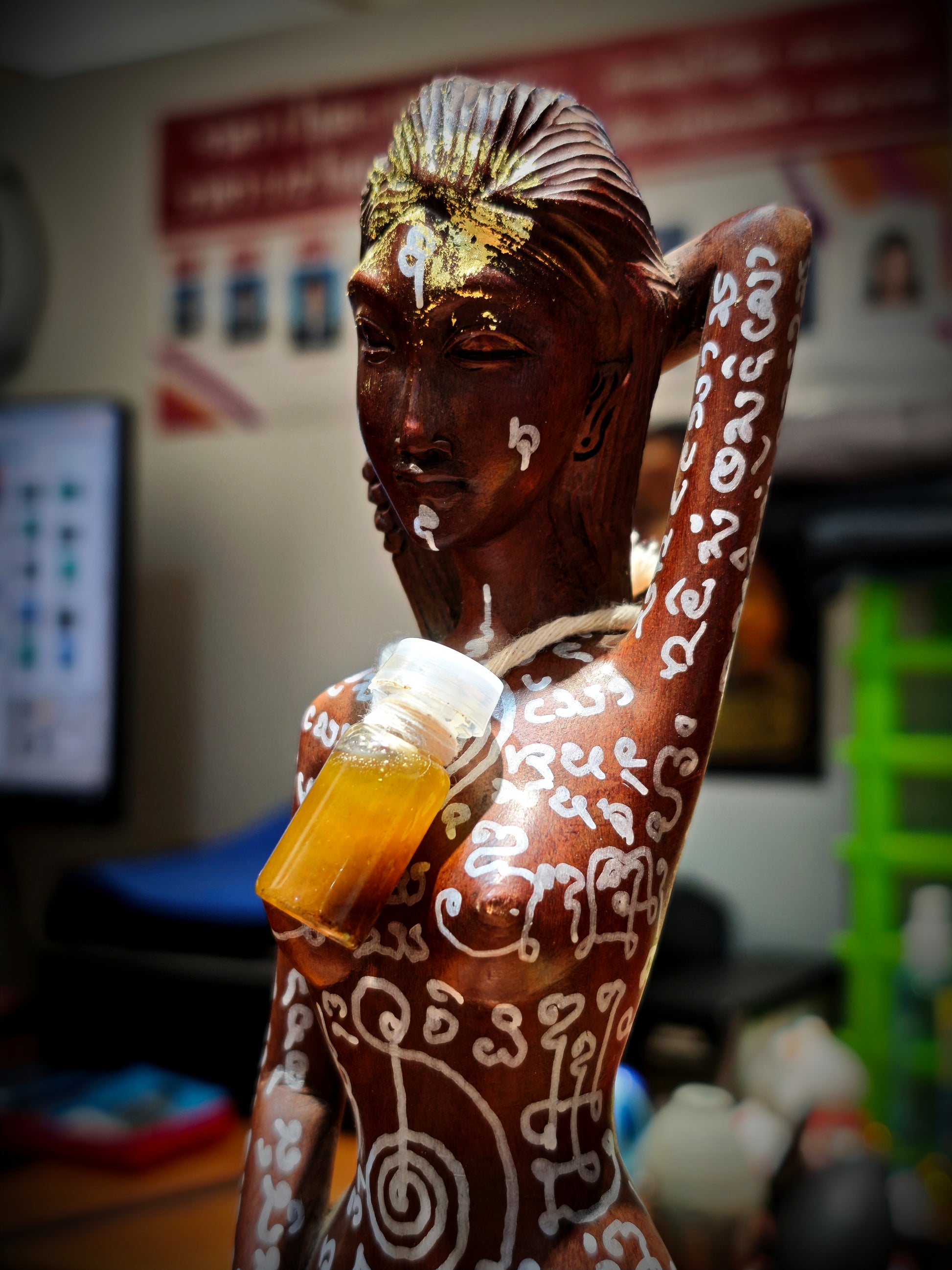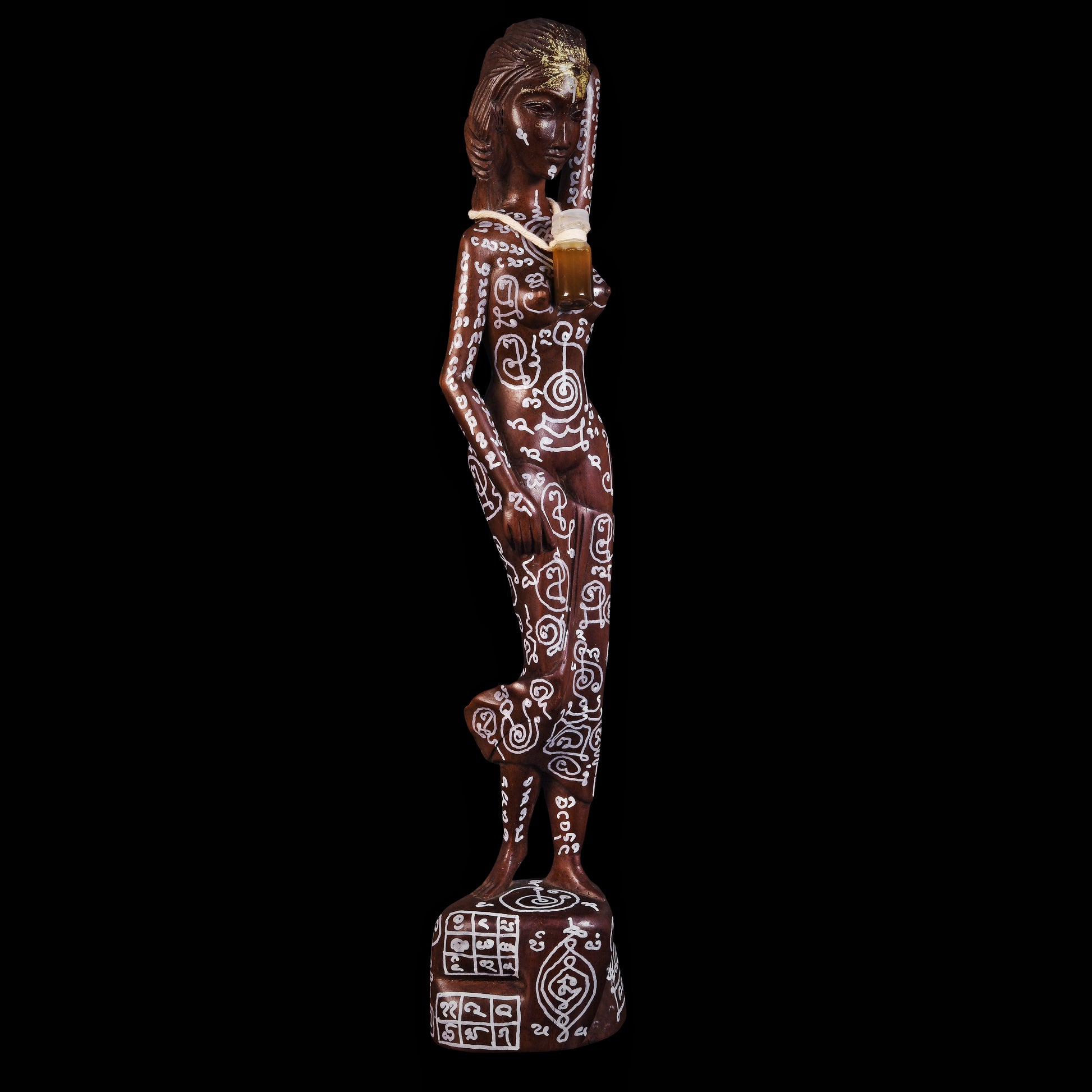 通体画符咒柬埔寨爱情幻术、驭鬼术、反降术、金桃花招财法术结合,底座入驱邪招财铅符片。