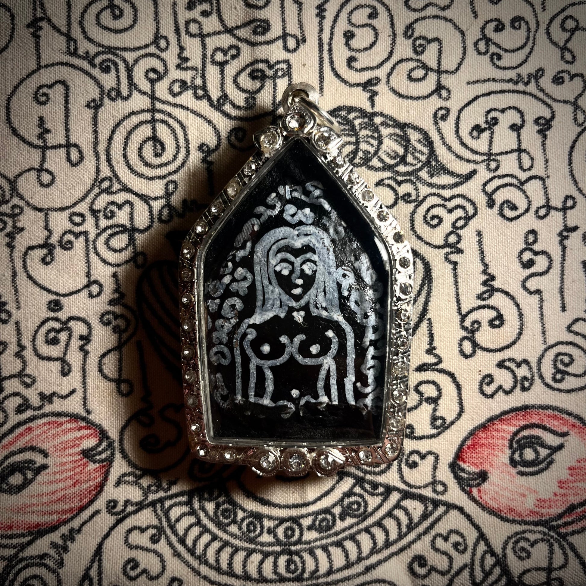 她的遗体被运回她的出生地——泰国曼谷安葬。无论人们是否认为这里闹鬼,周边的出租房目前都无人居住。即使是泰国南部著名的驱魔师也无法控制她的灵魂。所以她的遗体被埋葬了四年。火化时,殡仪师取下了一些头骨和锁骨碎片,建议将骨灰也放入其中,于是这些骨灰和火化的尸泥被埋在了护身符后面。阿赞萨维特使用柬埔寨秘法加持制作,护身符背面还镶嵌着3个控制灵魂的符咒塔固,上面刻有咒语,以增强其招财纳福、提升人气的功效。它能带来强大的守护力,好运、事业成功,并能化解竞争对手或者敌人的恶意。