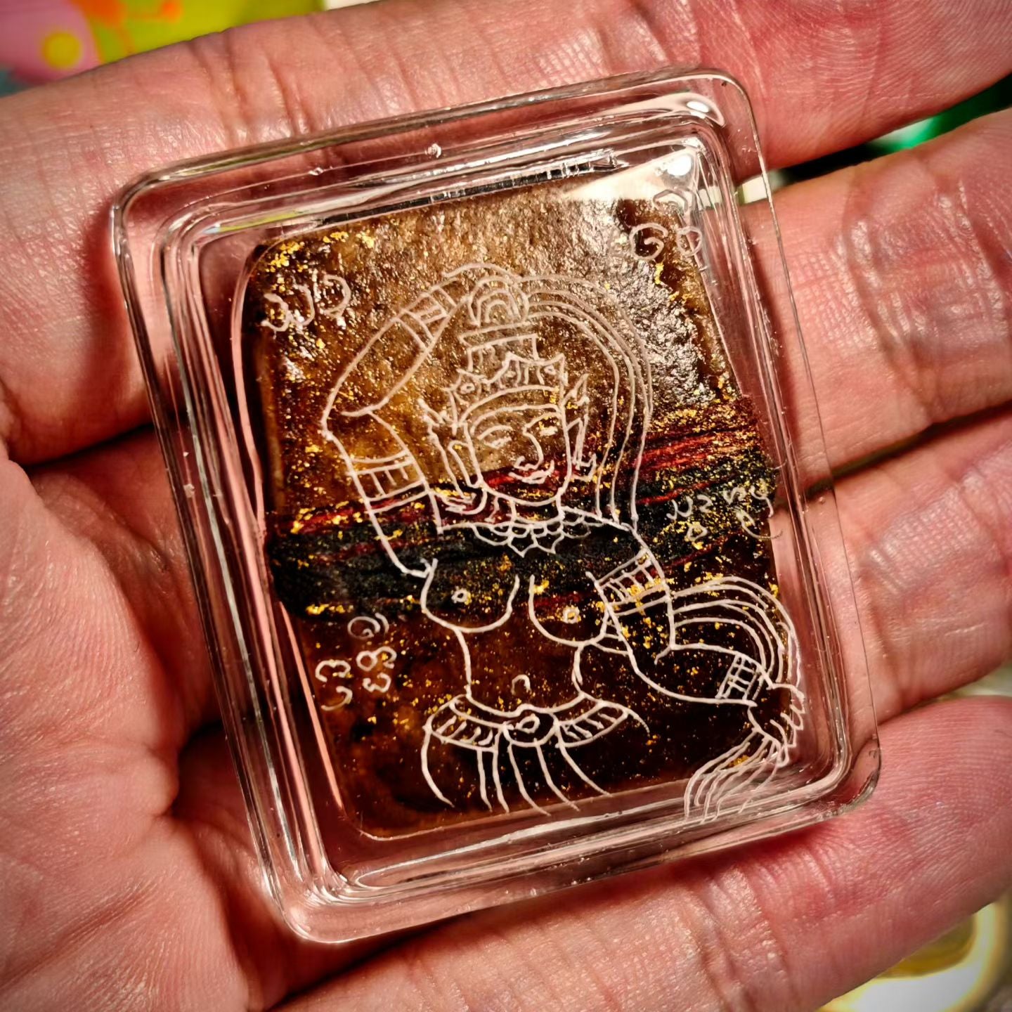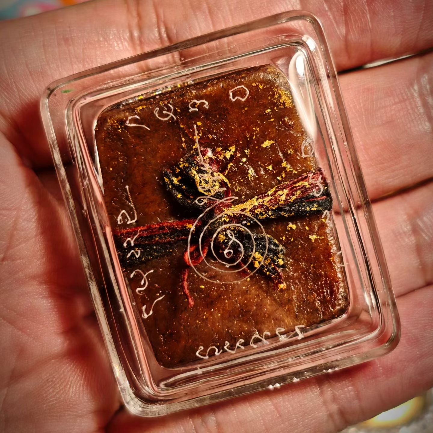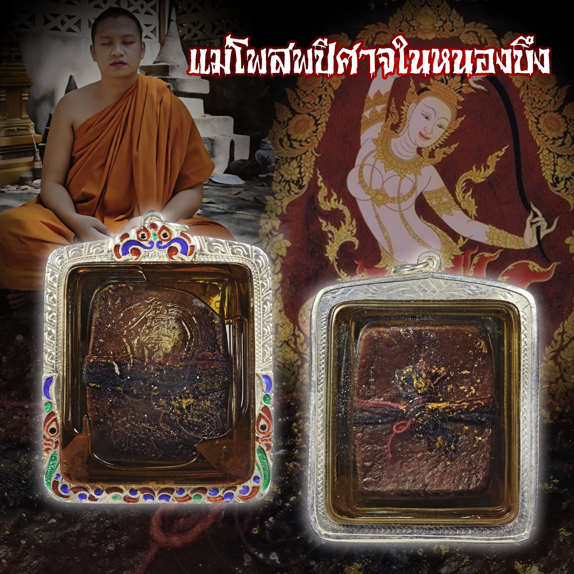 阿赞jakkrit以大地女神为灵感,搭配古兰纳法本人缘魅惑密咒加持,覆以金箔,缠缚煞线(尸体附近树木捆绑用于祭祀的圣线),祝祷诵咒后制成。质地油润,法力深沉