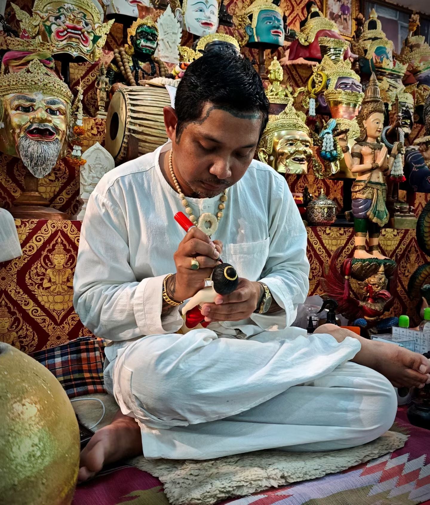 师傅作为泰中有名的c油刺符师,痴迷修习黑法已达炉火纯青的地步,家中供奉鲁士祖师无数。雷探长曾因为Nok师傅高超的c油刺符技法与大量信徒的正向反馈,专程前往为其录制节目,反响颇佳!