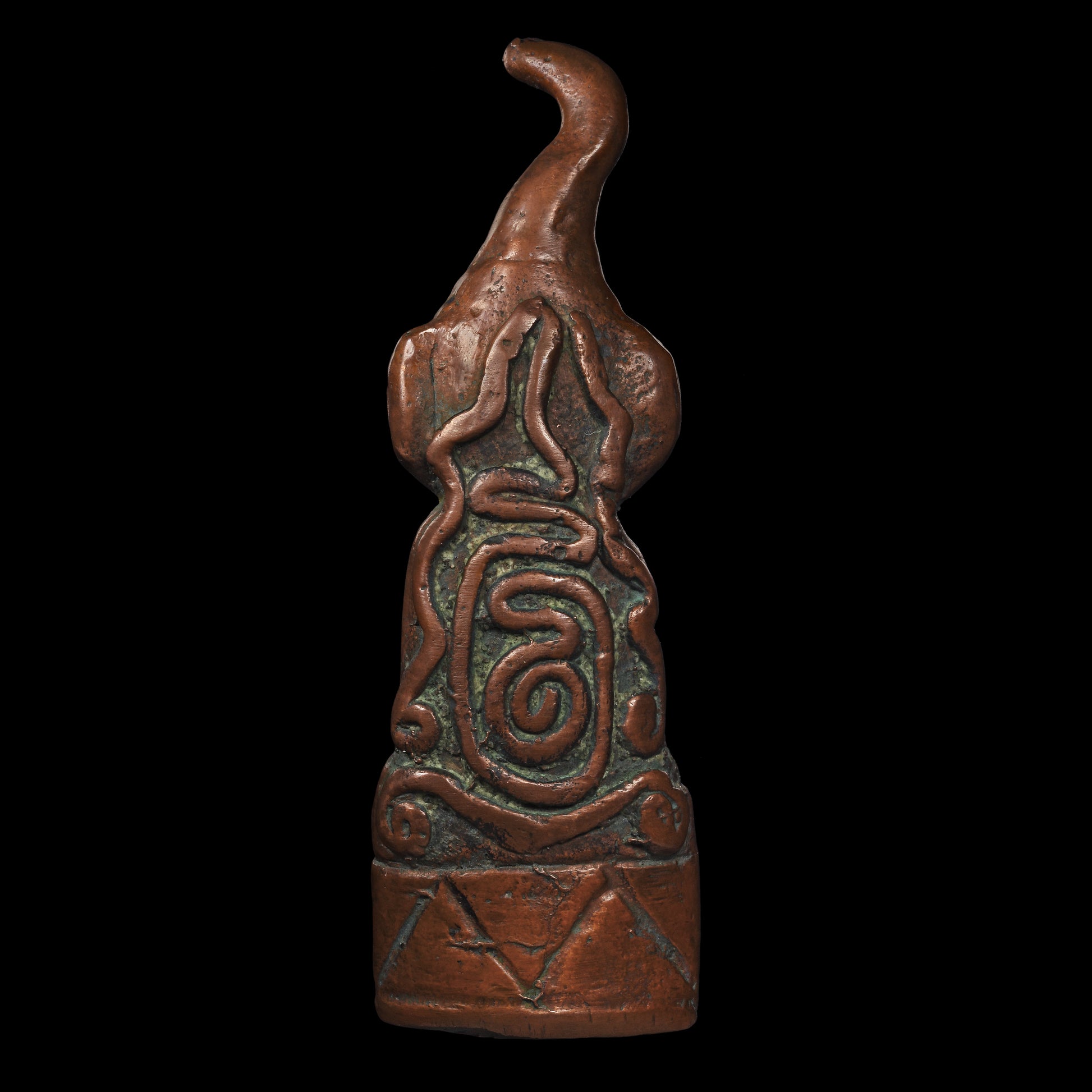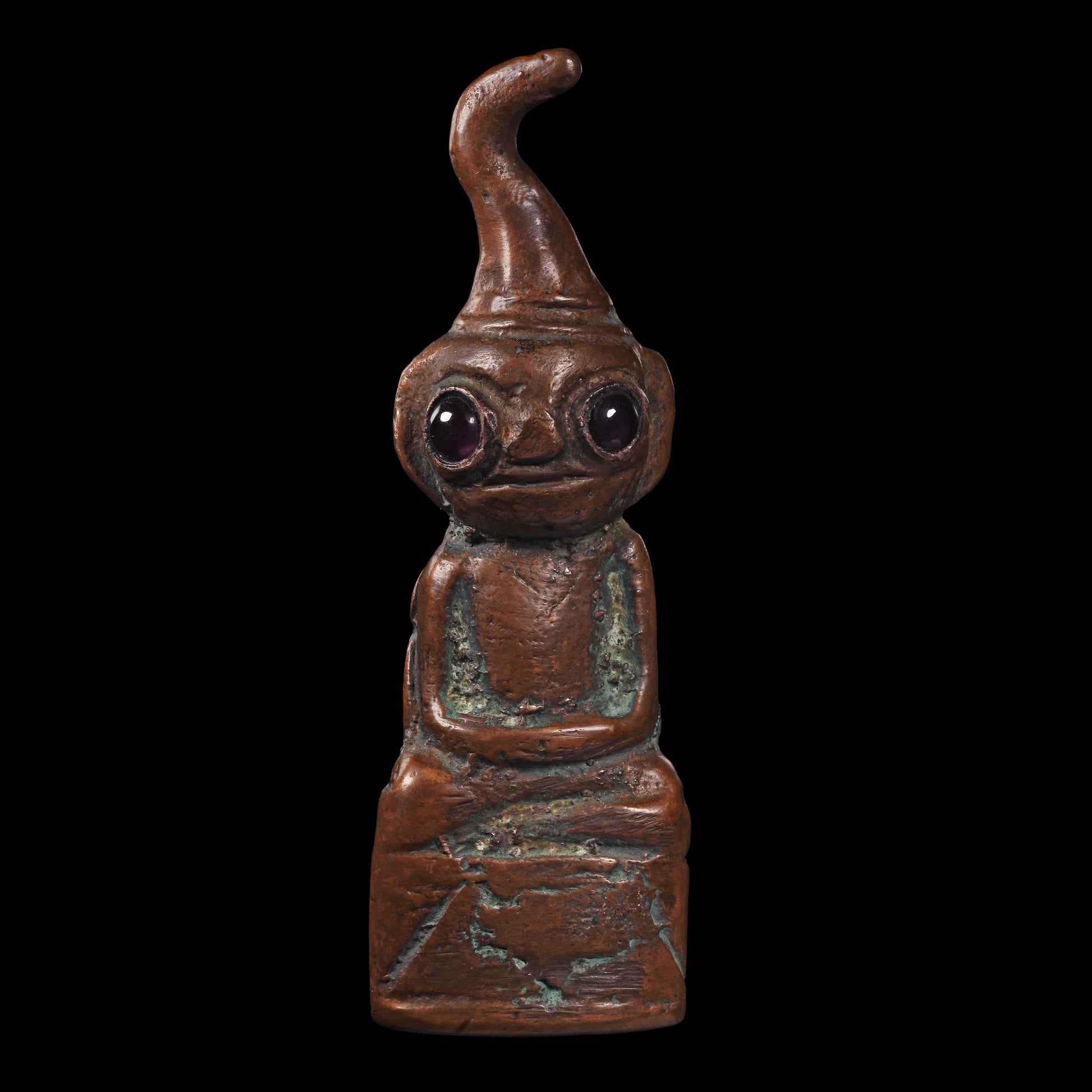 此尊红铜蛙面Ngang为柬埔寨珍稀古法圣物,传说兼具三大灵效: