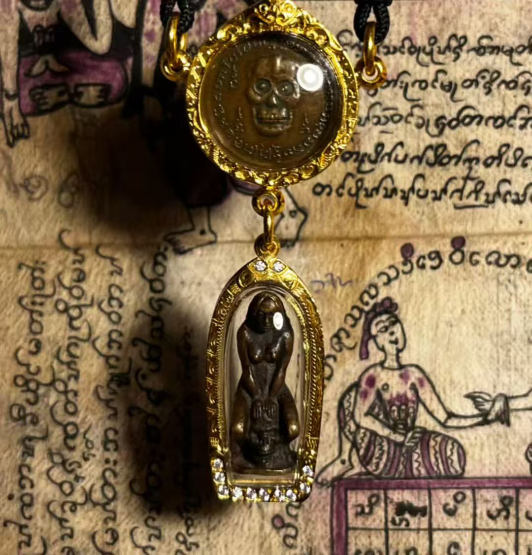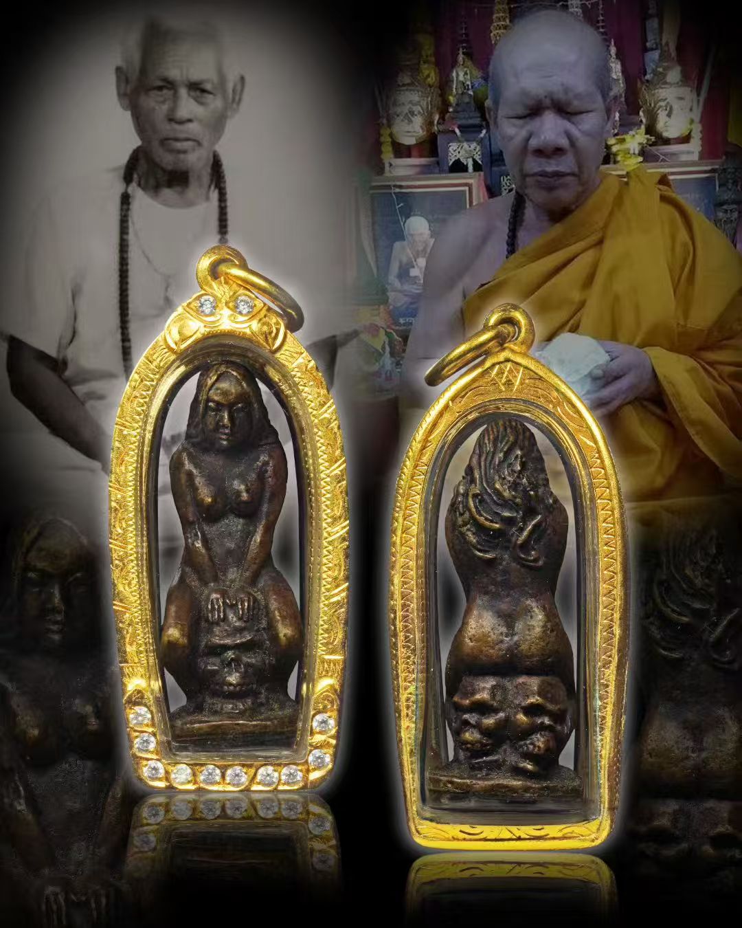 Ps:阿赞并与龙婆实核共同加持,佛历2545年第二期PraiChamlaeng女鬼坐头骨,恩师阿赞并提供材料并且帮助加持,此牌为龙婆实核成名作之一,口碑至今都是非常好的圣物。