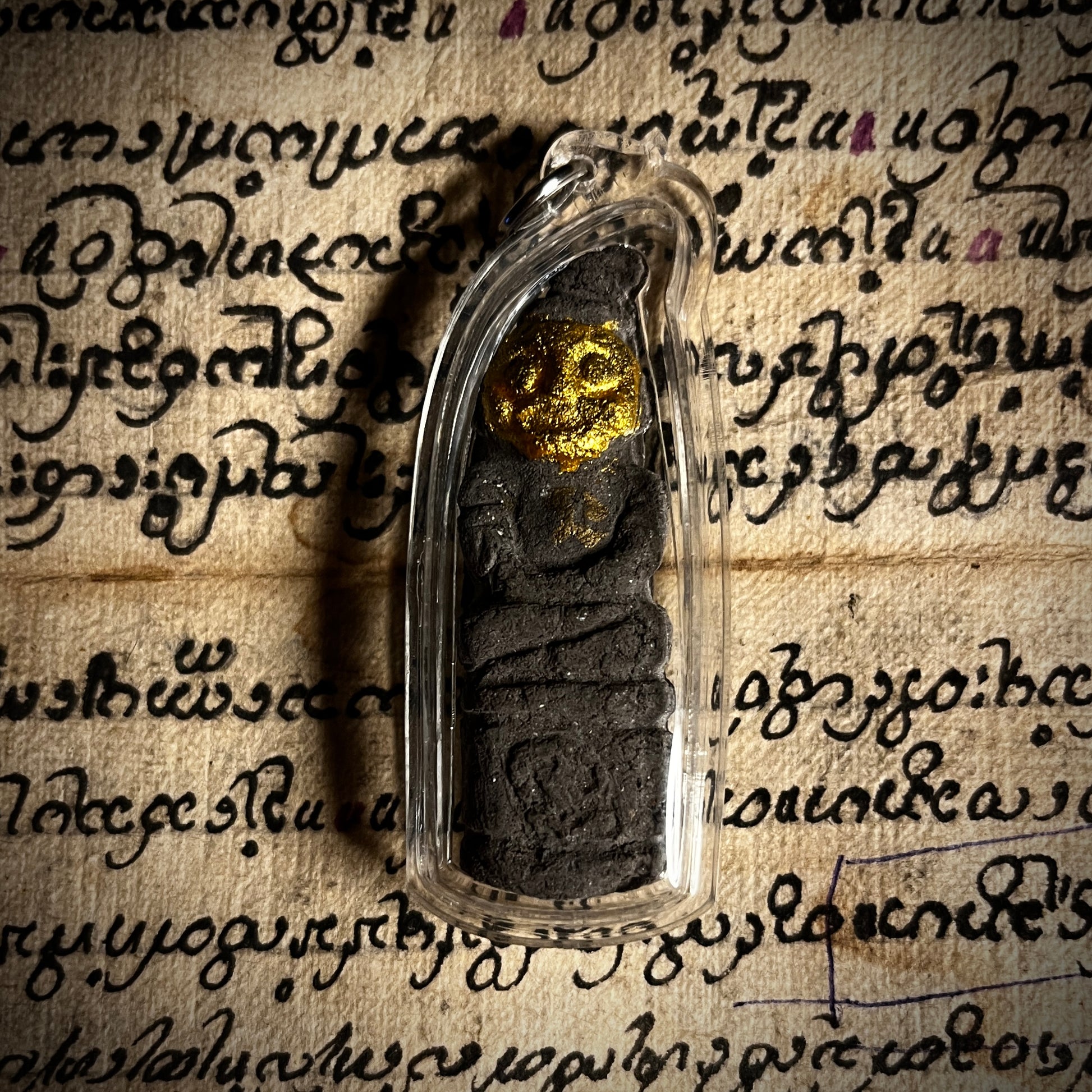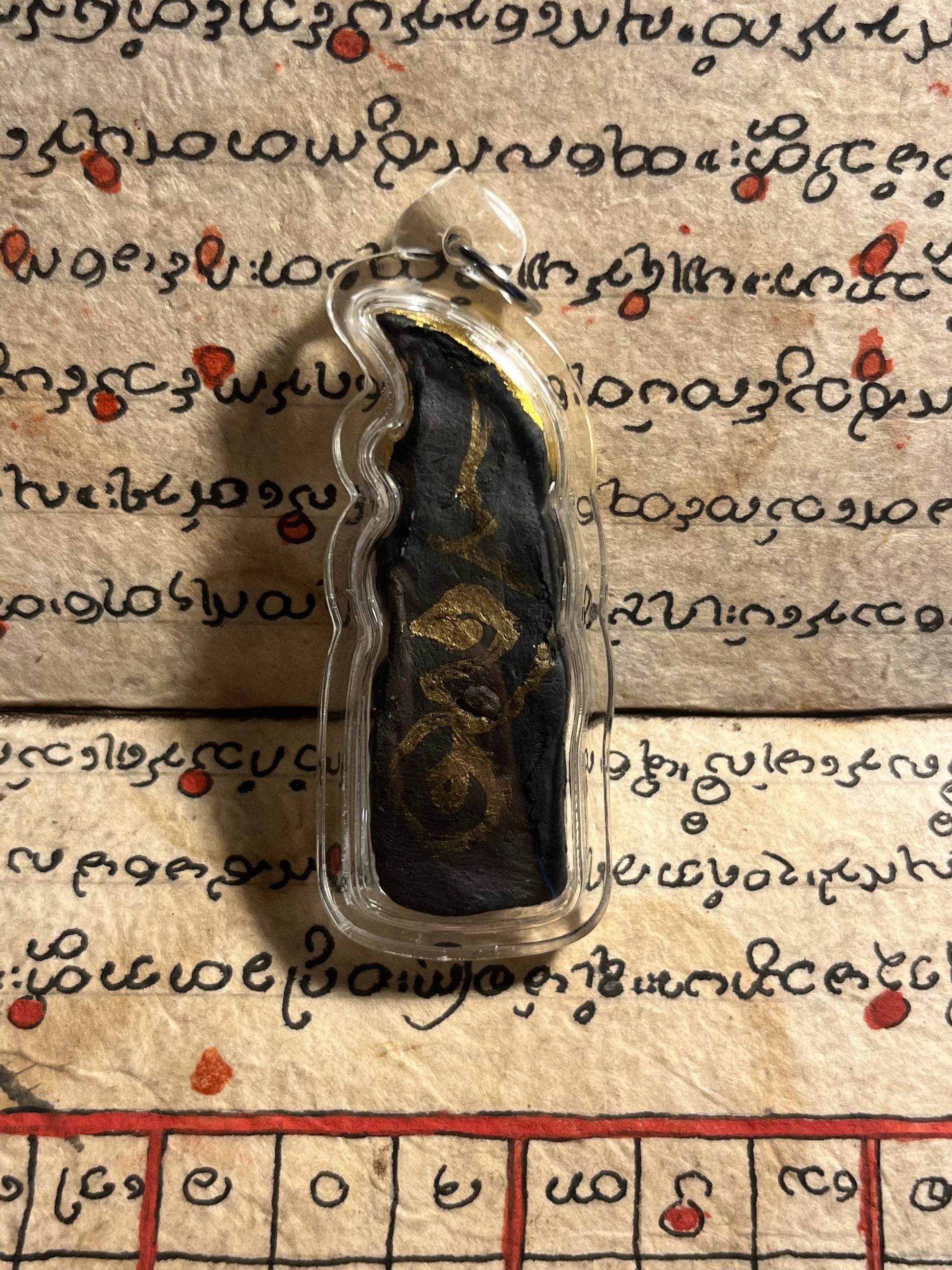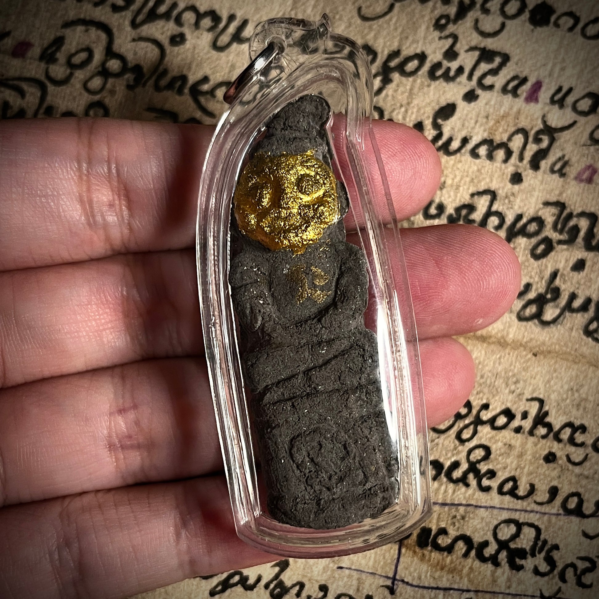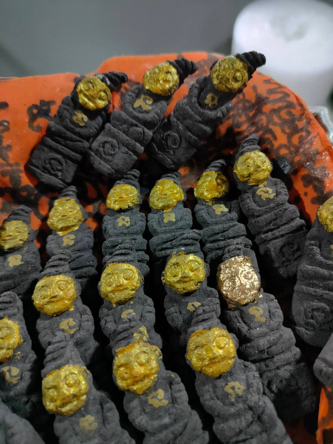 可佩戴于颈间与佛牌同挂,或放置于衣袋中(男女皆宜)。供奉需备:白酒与啤酒各一瓶、新鲜猪血一杯、荤素菜肴。供奉须在户外进行,此时许愿见效最快。随身佩戴或供奉期间,所求诸事皆能如愿。本品仅制作数十尊。