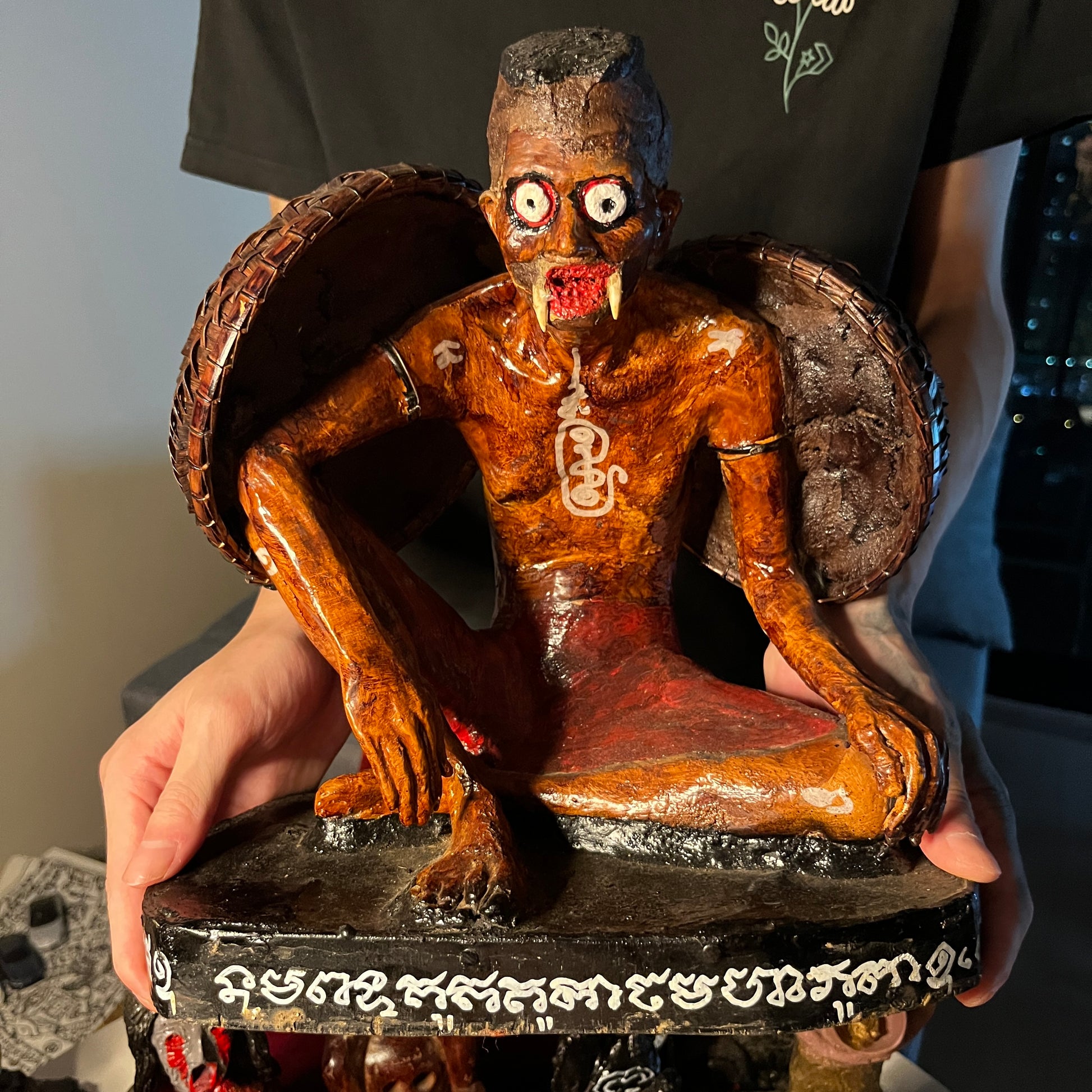 Krahang是泰国民间传说中的男👻。以能够飞行闻名,并且经常在夜间出没。他用一个形似翅膀的,坐在一个捣米杵上。